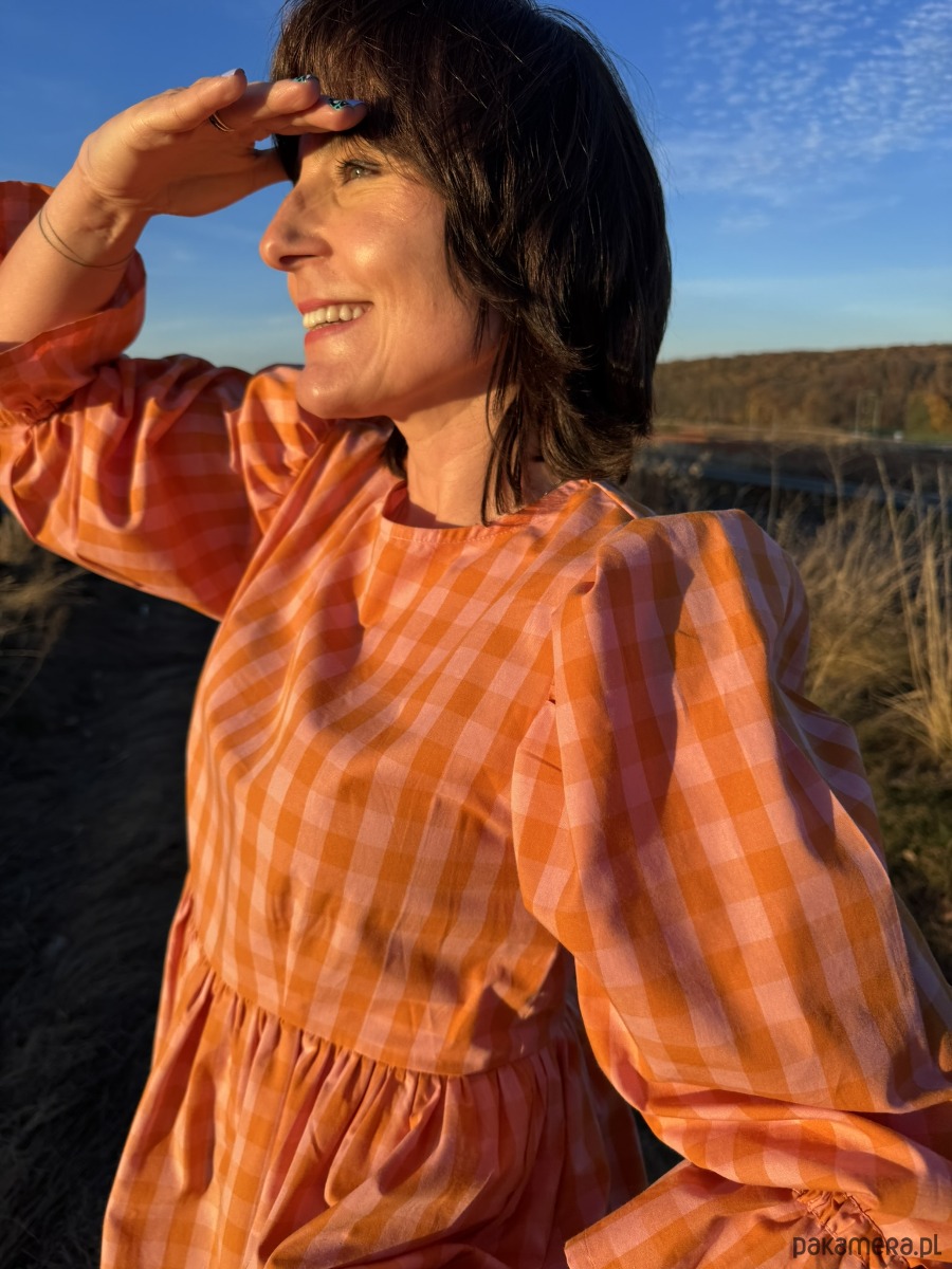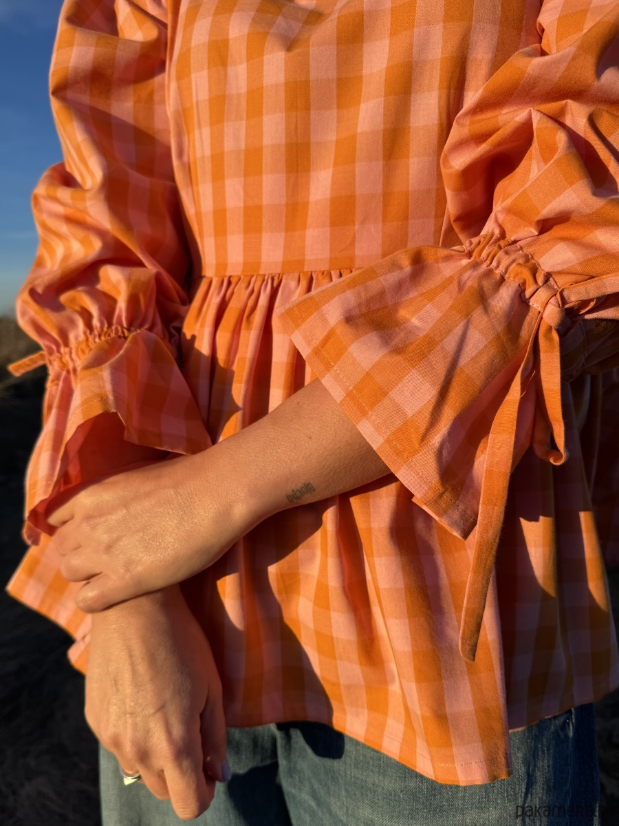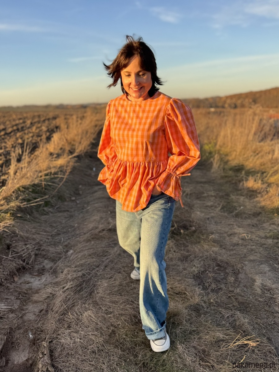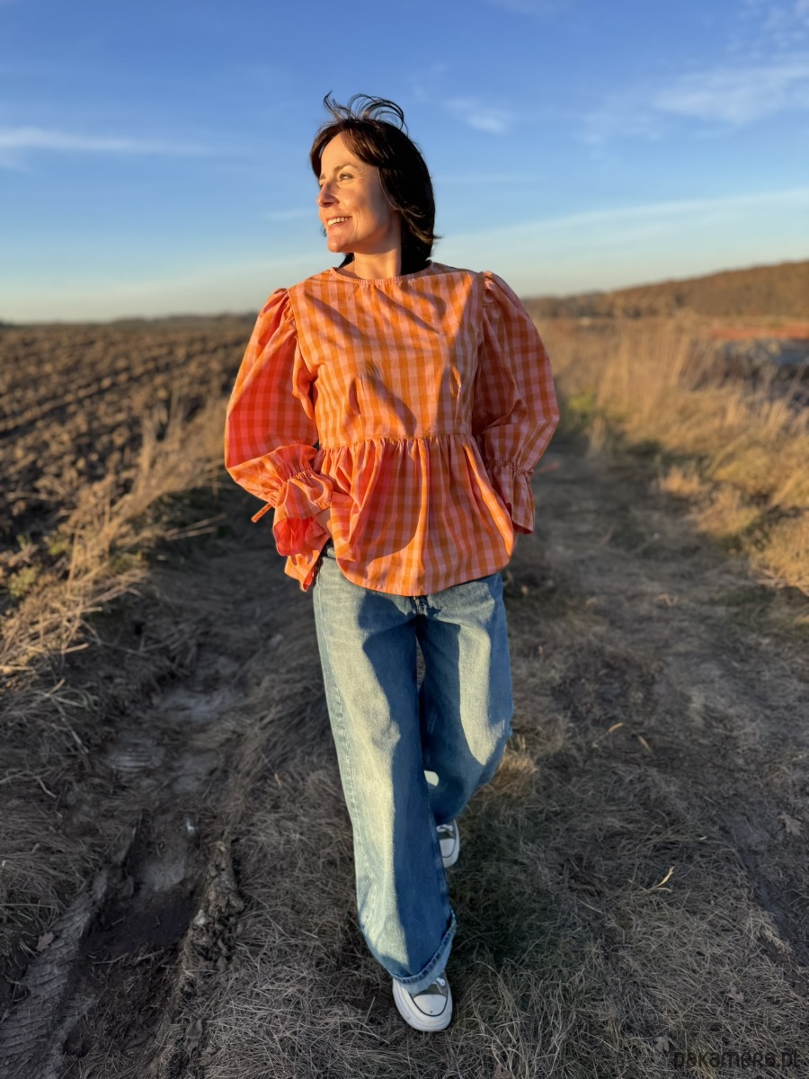 Bluzka to połączenie klasyki z radosnym kolorem – idealna na każdy sezon. Uszyta z naturalnej bawełny w pomarańczową kratkę vichy, przyciąga wzrok i dodaje energii niezależnie od pogody.