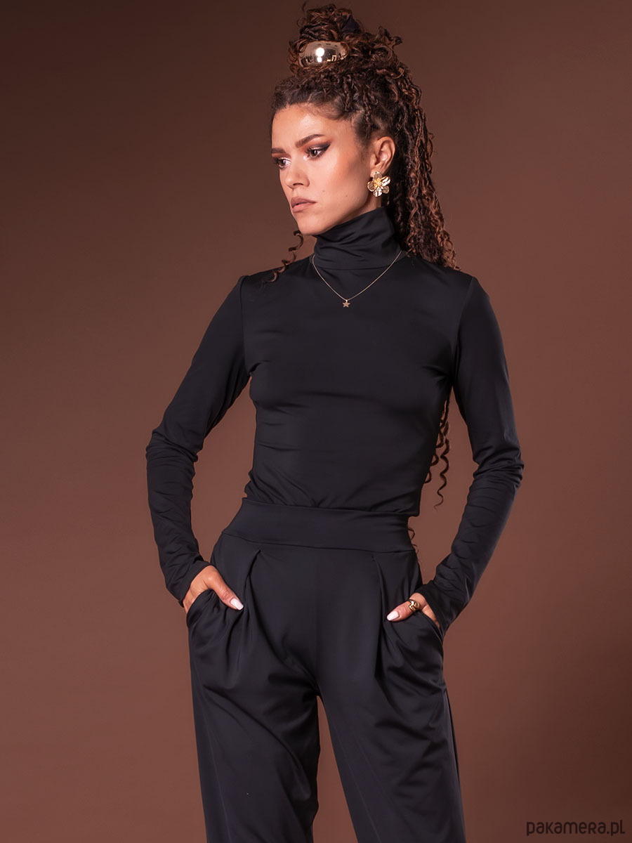 Ten wyjątkowy golf został zaprojektowany z myślą o komforcie i elegancji. Wykonany z nowoczesnego jerseyu jakości premium. Długi, przylegający golf zapinany na złote guziki zapewnia idealne dopasowanie, eliminując problem rozciągnięcia przy zakładaniu przez głowę. Dzięki temu Twój makijaż i fryzura pozostaną nienaruszone.