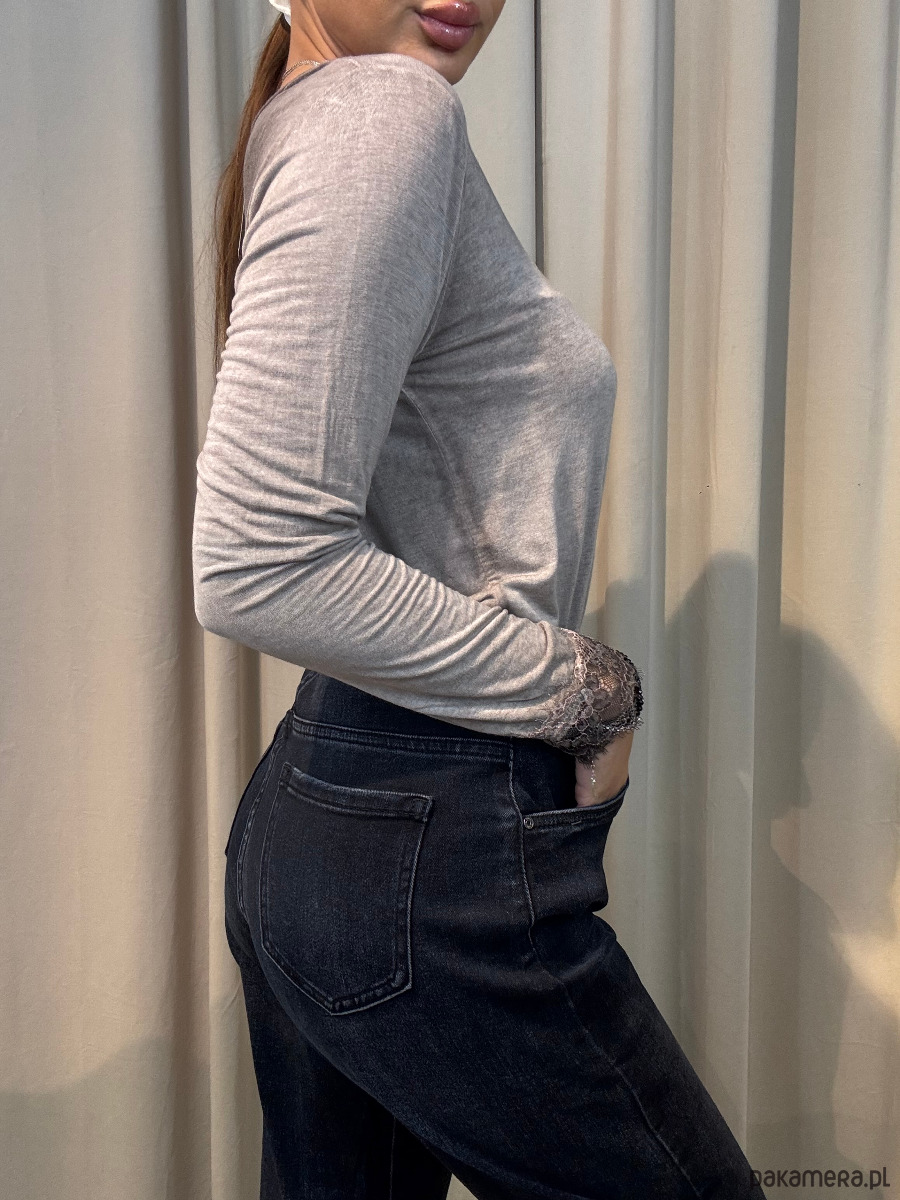 Bluzka z wykończenie koronkowym przy dekolcie oraz na rękawach.