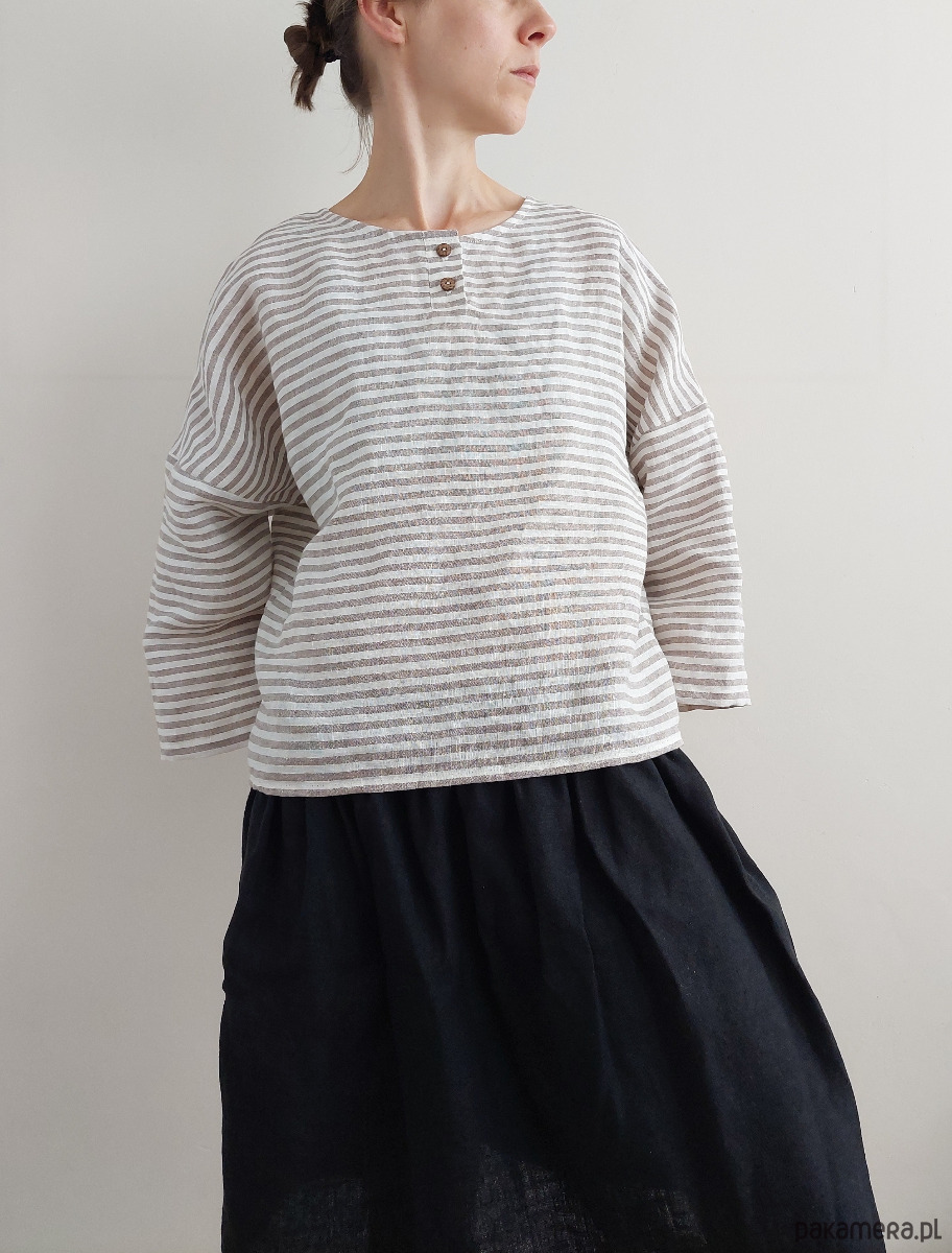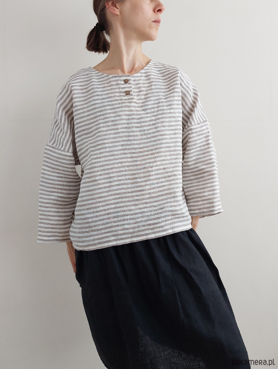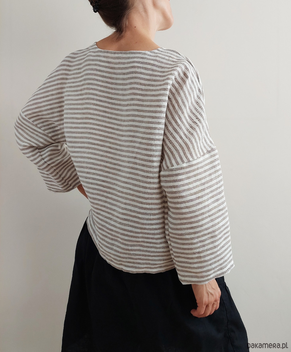 Bluzka "ZORZA" paski mocha, 100% len