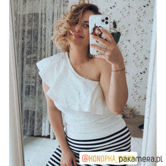 Super kobieca bluzka na jedno ramię. Krótki rękaw i ozdobna falbanka nadają jej lekkości i świetnie pasują do letnich stylizacji. Ubranie dostępne jest w trzech wariantach: czarnym, kremowym oraz w czarno-białe paski. Wybierz najlepszy wariant dla siebie!