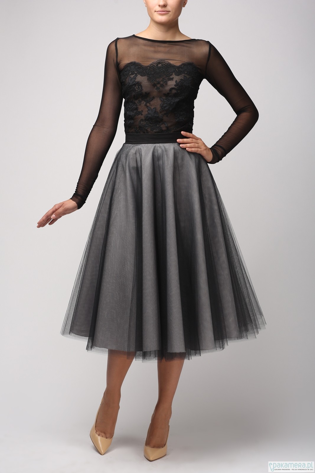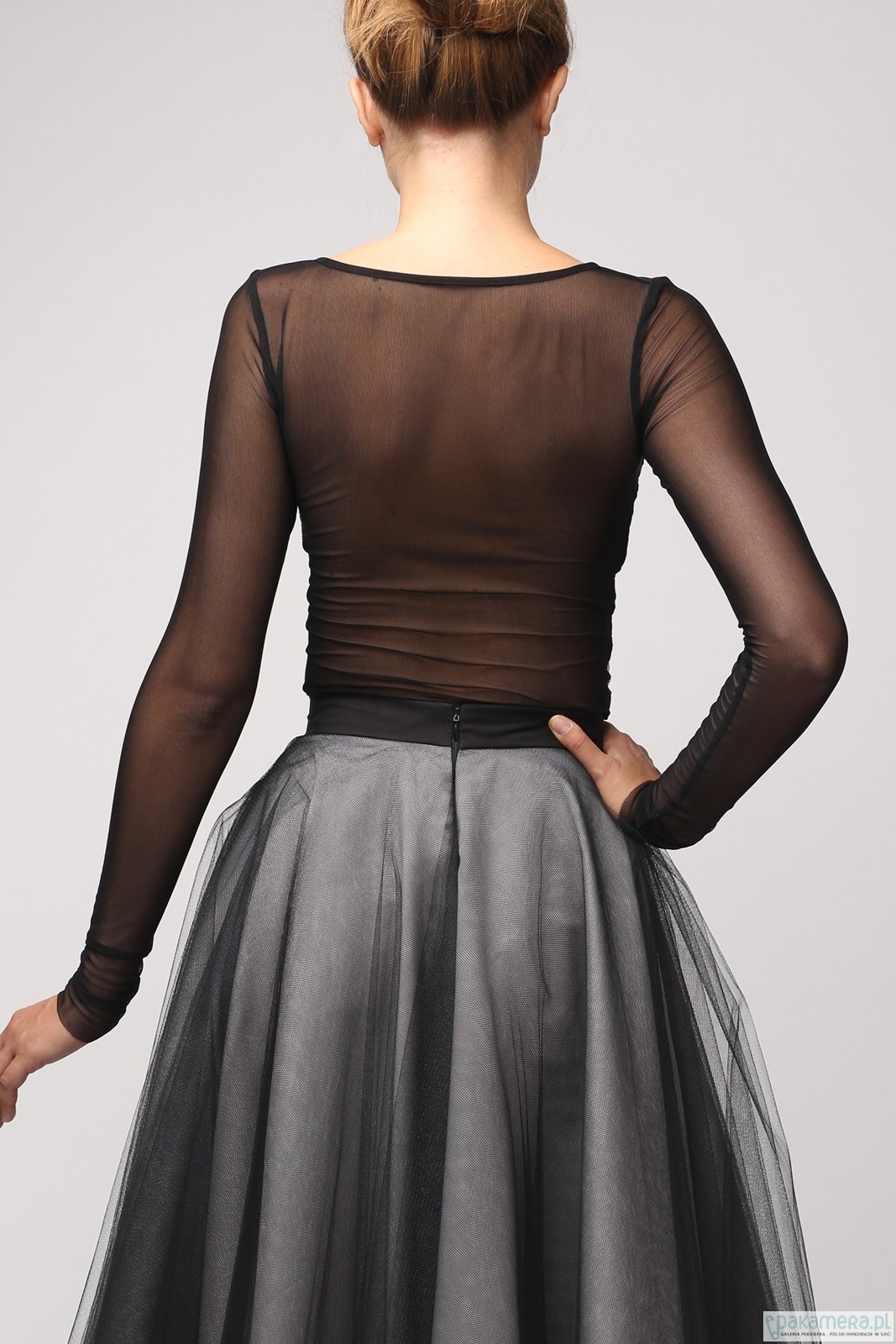 Obcisła bluzka z tiulu elastycznego oraz ozdobnej koronki w kolorze czarnym. Idealnie dopasowuje się do ciała dzięki dużej elastyczności materiału. Czas oczekiwania to około dwa tygodnie od wpłaty. Rozmiary: XS: długość 57 cm, biust 74-80 cm, talia 62-68 cm S: długość 58 cm, biust 78-84 cm, talia 66-72 cm M: długość 59 cm, biust 82-88 cm, talia 70-76 cm L: długość 60 cm, biust 86-92 cm, talia 74-80 cm XL: długość 61 cm, biust 90-96 cm, talia 78-84 cm W przypadku zainteresowania innym rozmiarem lub kolorem prosimy o kontakt