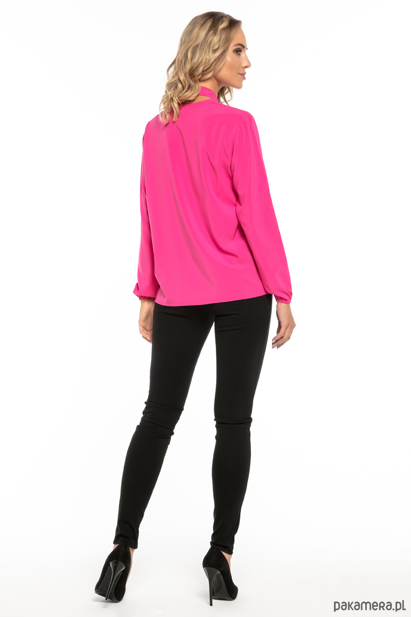 Elegancka bluzka z szyfonu typu silky z głębokim dekoltem i długim rękawem. Rękawy ściągnięte gumką. Do bluzki dołączony jest krawat.