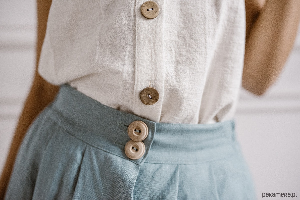 Koszula na ramiączkach wykonana w 100% z tkaniny lnianej w kolorze złamanej bieli.