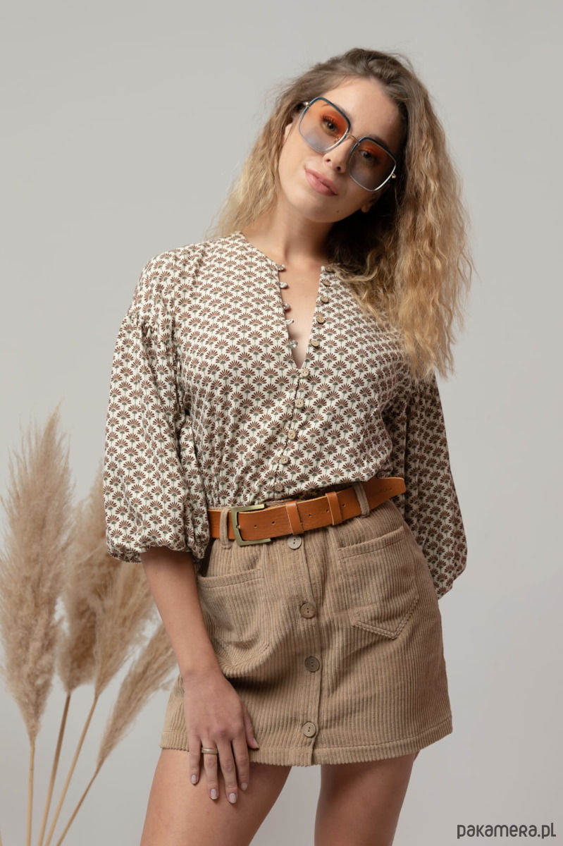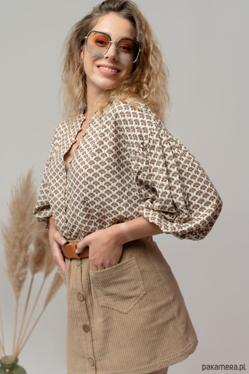 Damska koszula oversize wykonana z jedwabiu surowego drukowanego w piękny wzór retro kwiatuszków.