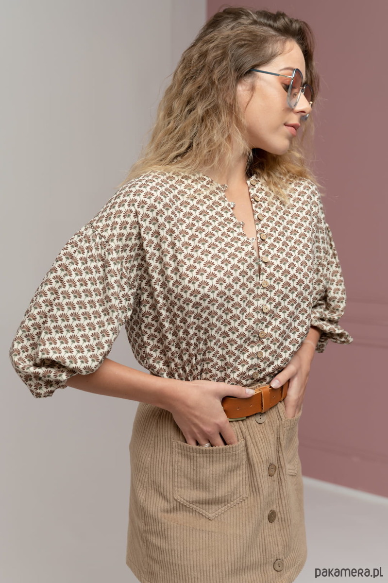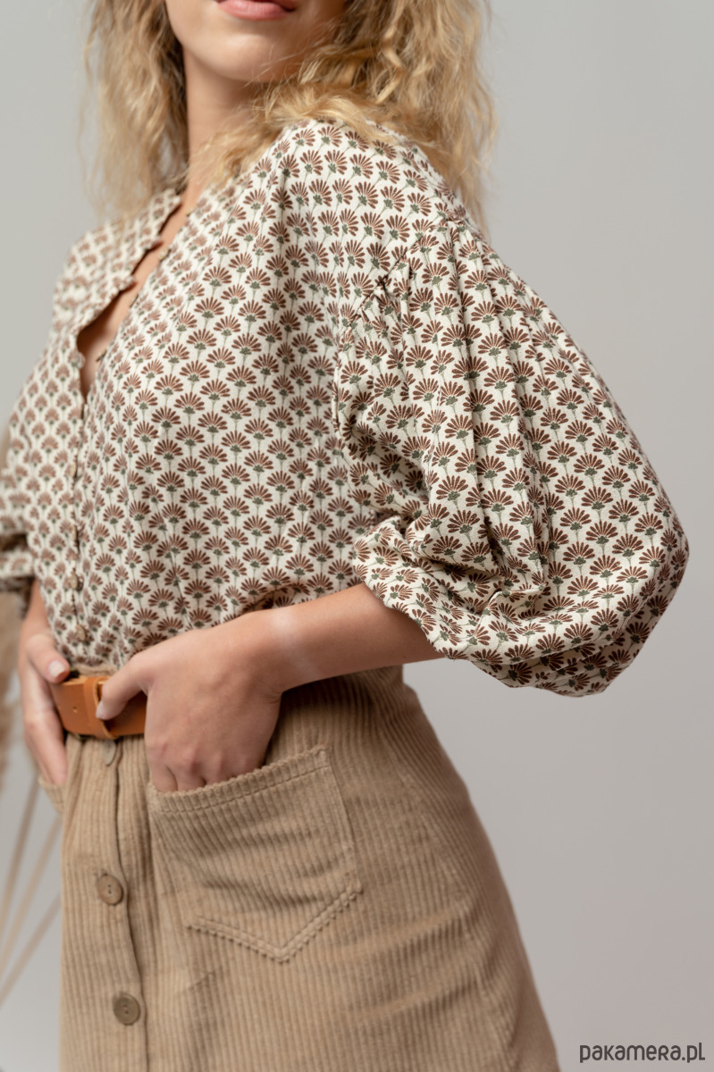 Bufiaste rękawy o długości 3/4 zakończone gumką.