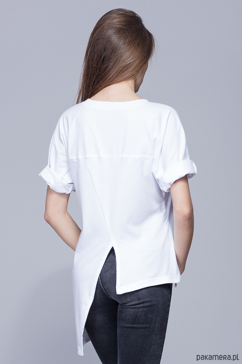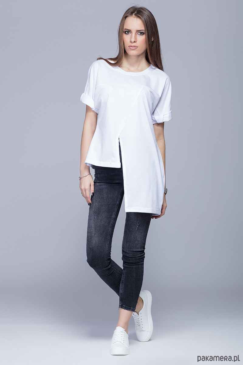 Wyjątkowy t-shirt z dłuższym bokiem dla kobiet lubiących niebanalny oryginalny styl.