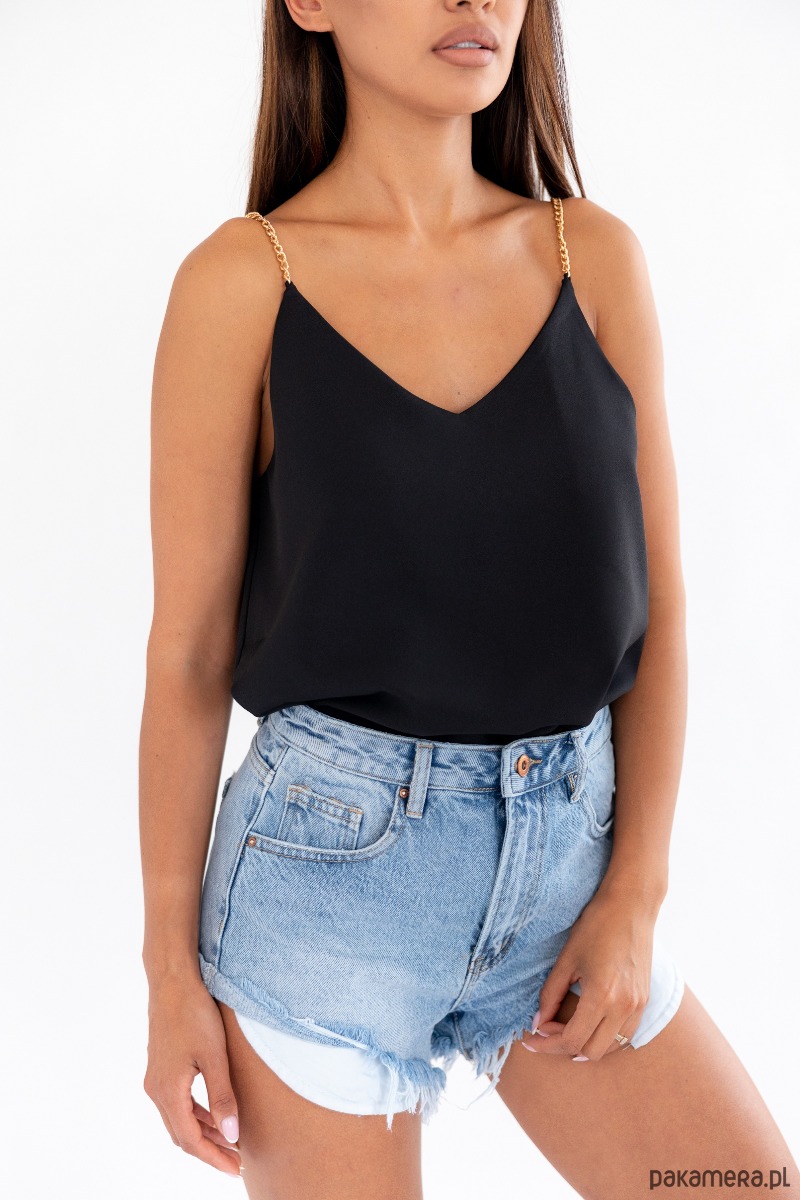 Bluzka na ramiączka z łańcuszkiem to propozycja dla Pań ceniących sobie klasę i elegancję. Bluzeczka na ramiączkach jest idealną bazą pod marynarkę, czy ramoneskę. Łańcuszek dodaje jej uroku i zmysłowości. Bluzeczka sprawi, że każda stylizacja będzie zjawiskowa. Jest to totalny MUSTHAVE najbliższego sezonu!