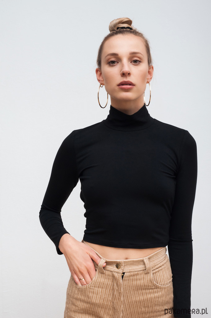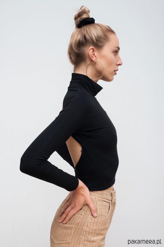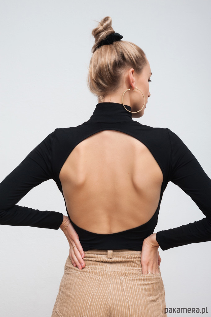 Golf z miłej dla ciała wiskozy z długimi rękawami z dużym, okrągłym wycięciem na plecach.