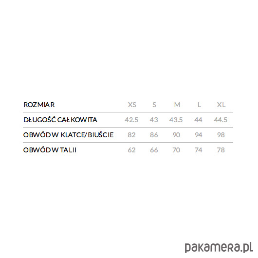 Modelka ma na sobie rozmiar XS. Wymiary modelki: 83/60/89, wzrost 180 cm