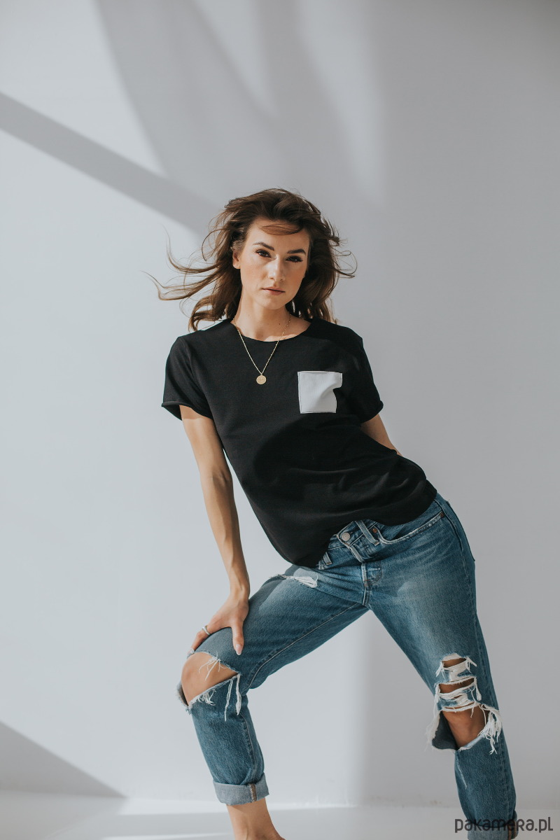 Basiocowa koszulka przełamana tym razem białą kieszonką. Możesz stworzyć zestaw ONA + ON, ponieważ taka sama opcja powstała także dla niego.