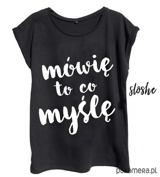 Piękna koszulka w czarnym kolorze z białym napisem "Mówię to co myślę", widoczna z daleka dzięki ciekawej grafice przyozdobi twój strój i pozwoli w łatwy sposób wyrazić myśli, uczucia czy idee.