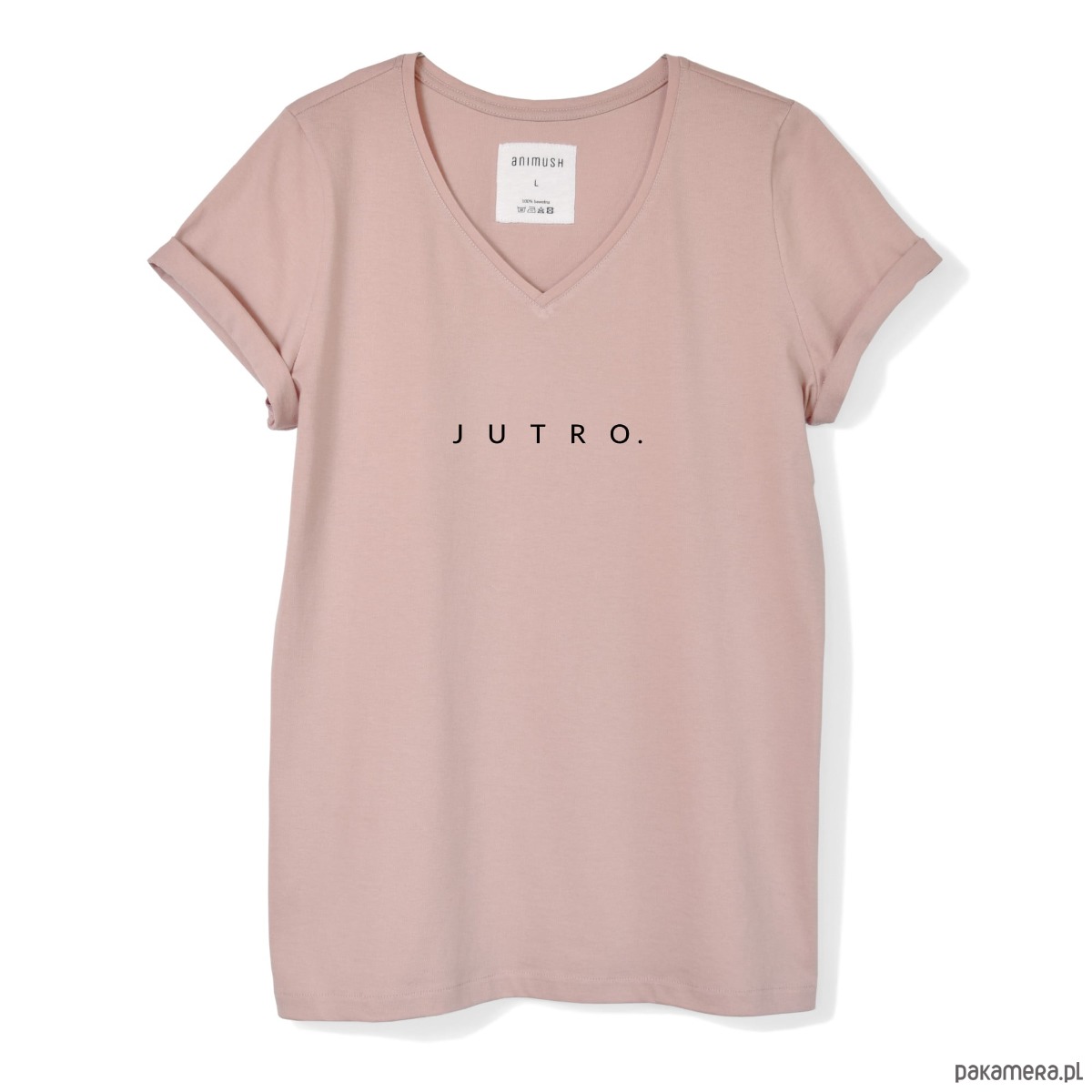 Pudrowy różowy T-shirt z napisem JUTRO.