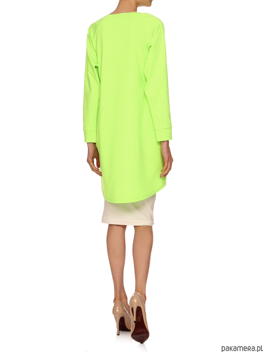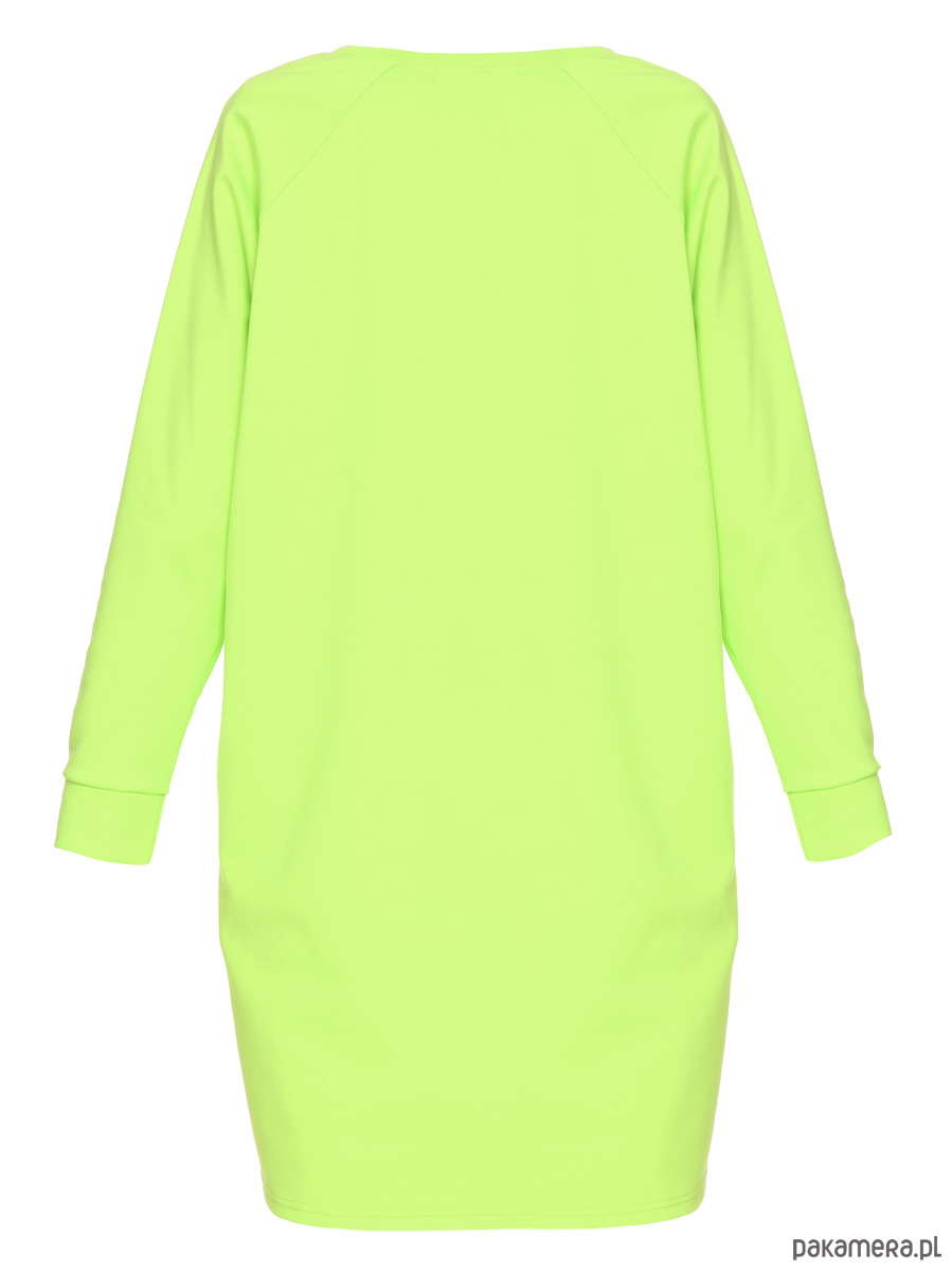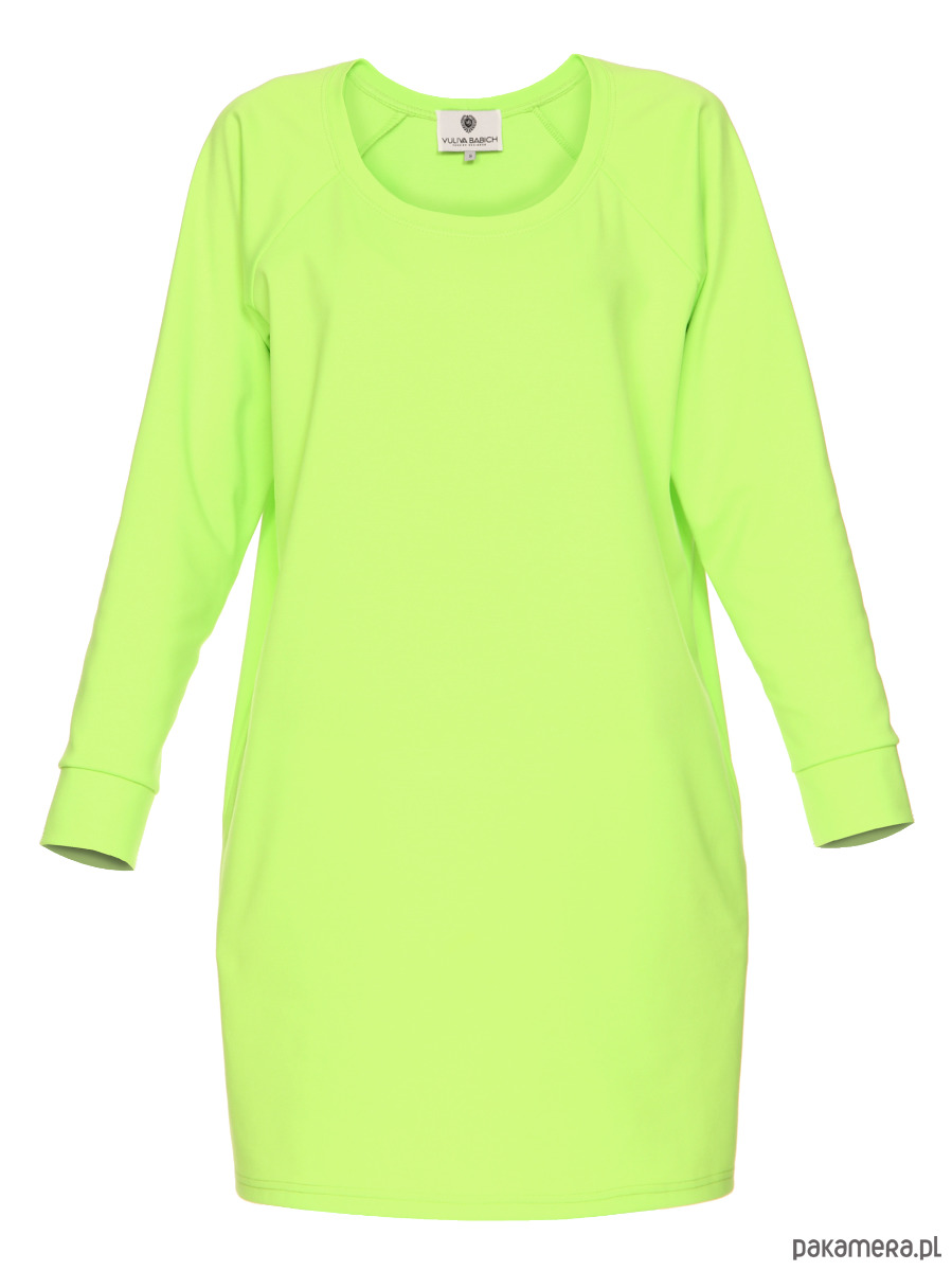 Bluza z kieszeniami. Bluza na co dzień; swobodny i niekrępujący fason; okrągły dekolt; rękawy zakończone mankietami. Wygodna i uniwersalna. Wykonana z wysokiej jakości naturalnej dzianiny; tkanina przyjemna dla ciała, przewiewna. Wiskoza kalandrowana: 65% wiskoza, 30% nylon, 5% spandex. Kolor: neonowozielony RAL6038. Długość rękawa ok. 60 cm; długość tyłu ok. 93 cm; długość z przodu ok. 86 cm. Pranie w pralce w temp. 30 stopni; suszenie w stanie rozwieszonym; prasowanie parą.