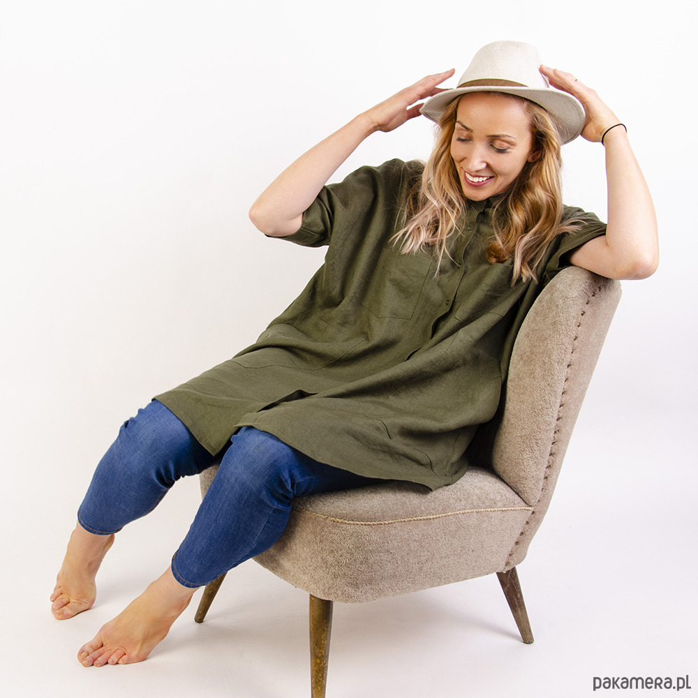Lniana tunika khaki
