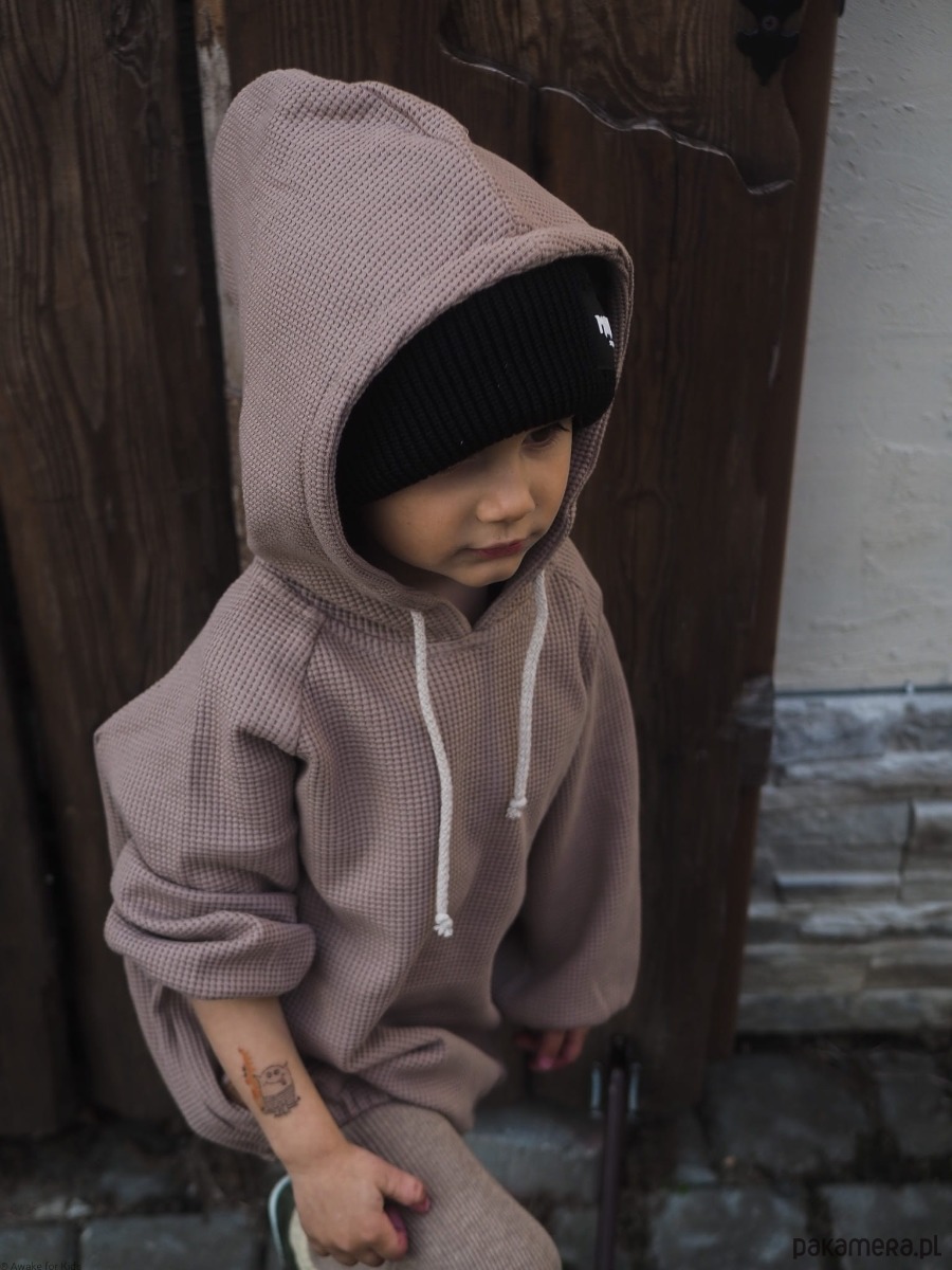 Bluzobody z kapturem dla dziecka oversize wafel organic