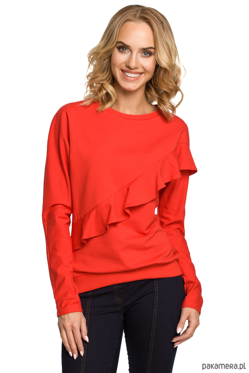 Stylowa choć sportowa bluza z kimonowymi rękawami i ozdobną falbaną biegnącą przez środek. Doskonały, modny dodatek do wielu stylizacji.
