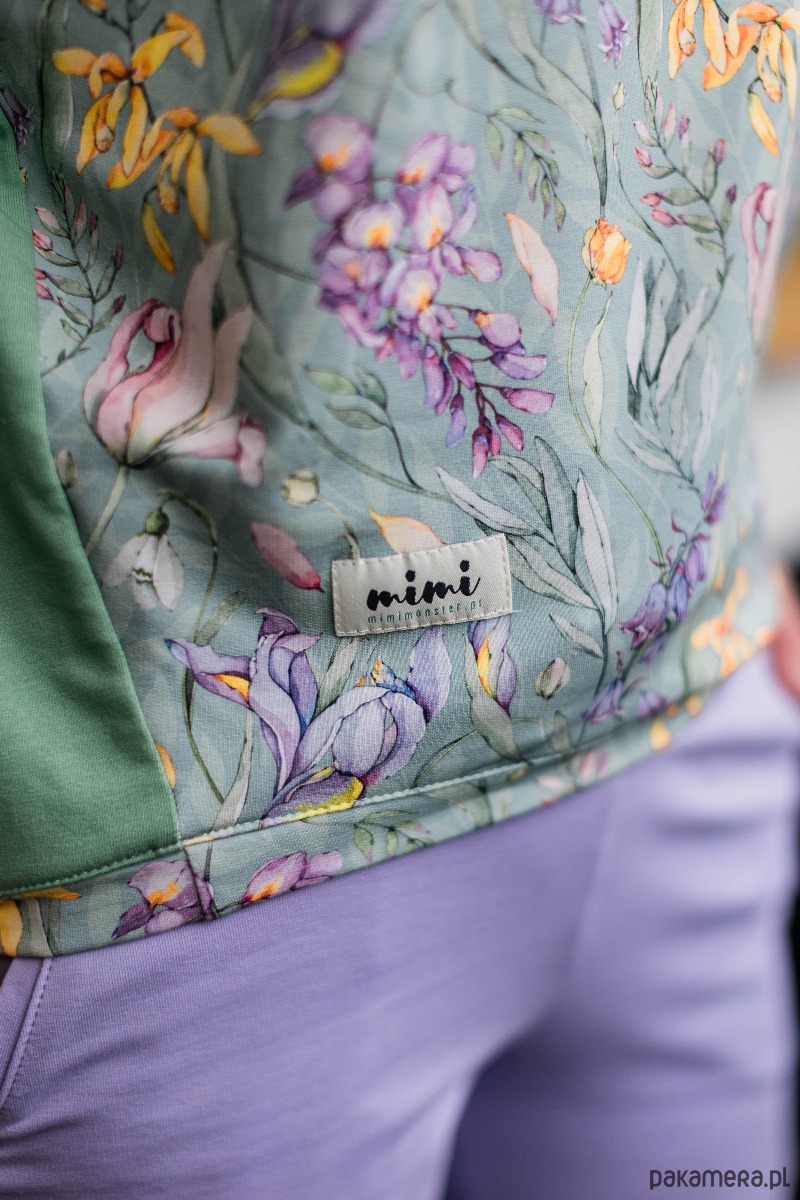 -użyte kolory: pastelowa zieleń, wielokolorowy nadruk z motywem kwiatów
