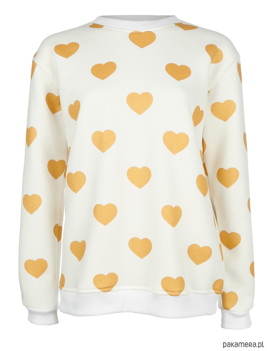 Wykonana z wysokogatunkowej bawełny. Na przodzie bluzy i tyle znajdują się złote serduszka.