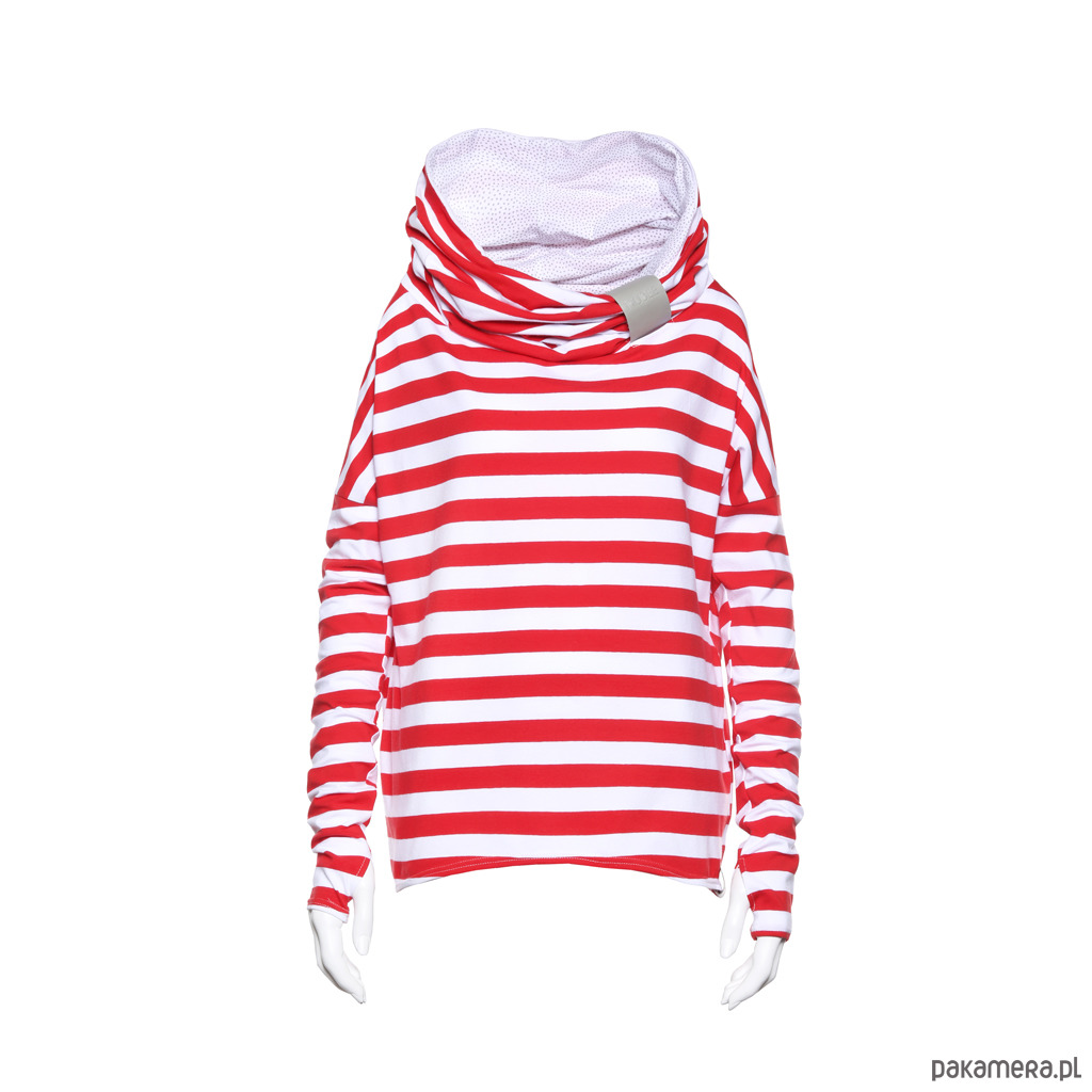 KOLOR: Pasy czerwono - białe. Wnętrze komina: wzór taki jak na zdjęciu - Ze względu na użycie materiału we wzór poszczególne sztuki mogą różnić się miejscem jego rozmieszczenia