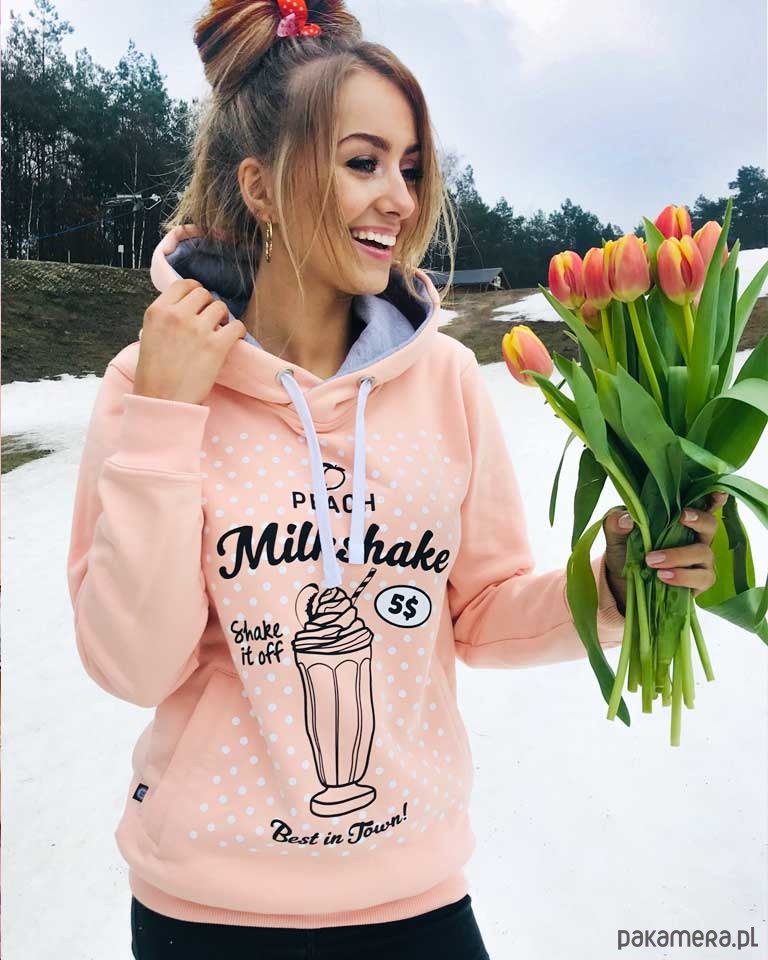 Śliczna miętowa bluza która swoim kolorem zachwyca! Bluza z dużym biało-czarnym printem w zaprojektowana stylu Amerykańskich plakatów. Metki Łap Nas wszyte w karczek i szew boczny. Bluza jest uszyta z wysokogatunkowej bawełny posiada kieszenie i duży kaptur. Print jest bardzo trwały nie spiera się ani nie kruszy. 100% Made in Poland