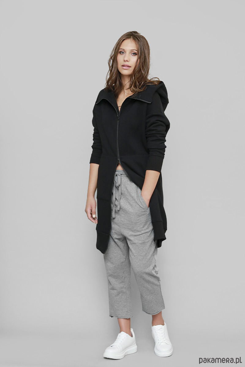Delfina to długa, oversize'owa bluza z dużym kapturem.