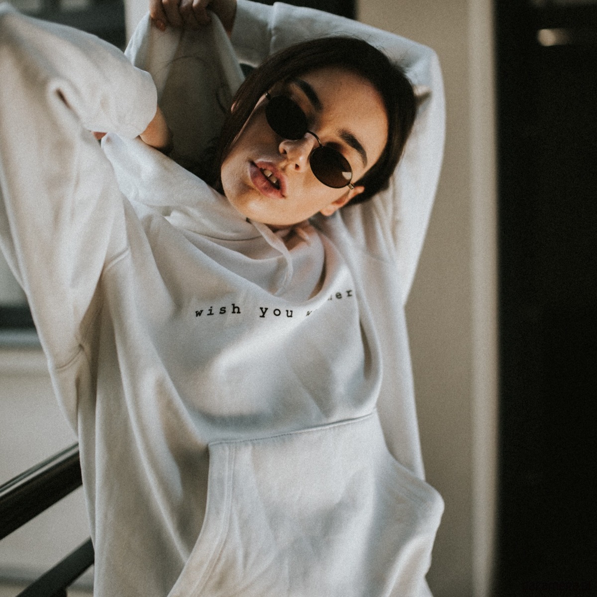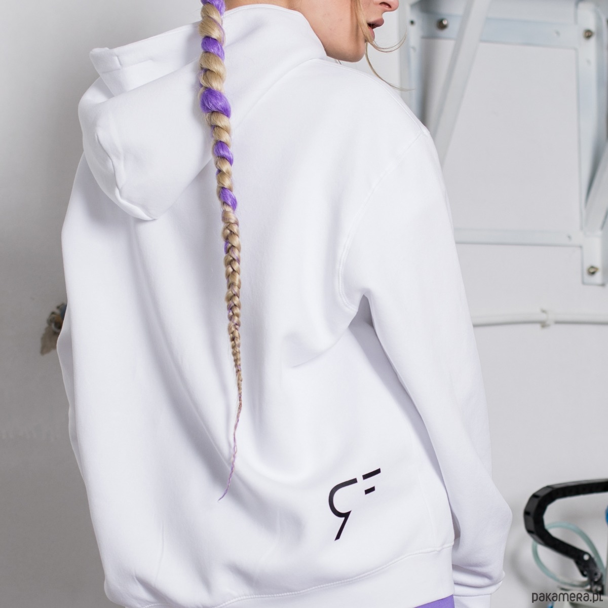 Bluza typu hoodie, wkładana przez głowę, z kapturem, taśma wzmacniająca w tym samym kolorze między ramionami, ściągacze przy mankietach, dekolcie i u dołu wykonane z taśmy bawełnianej z dodatkiem lycry dla zachowania kształtu bluzy