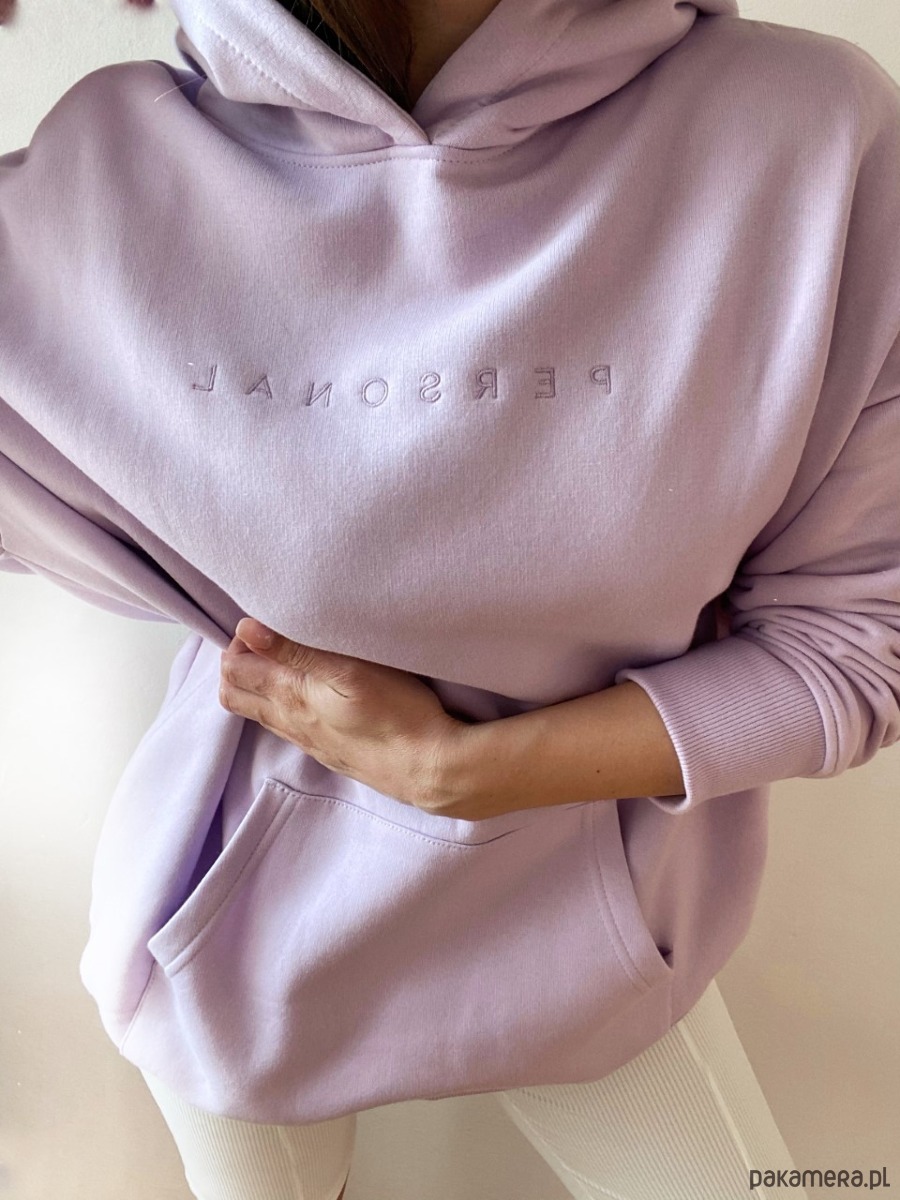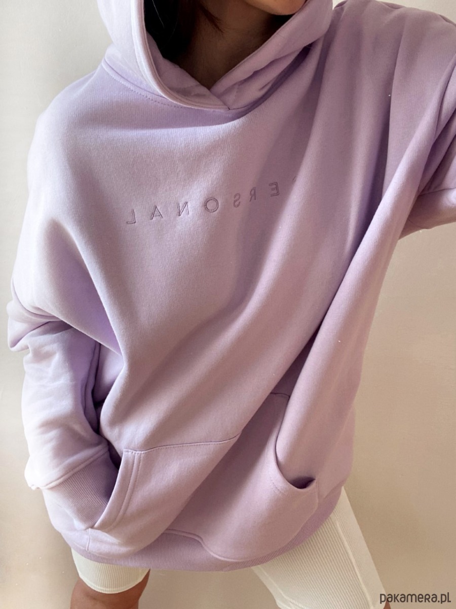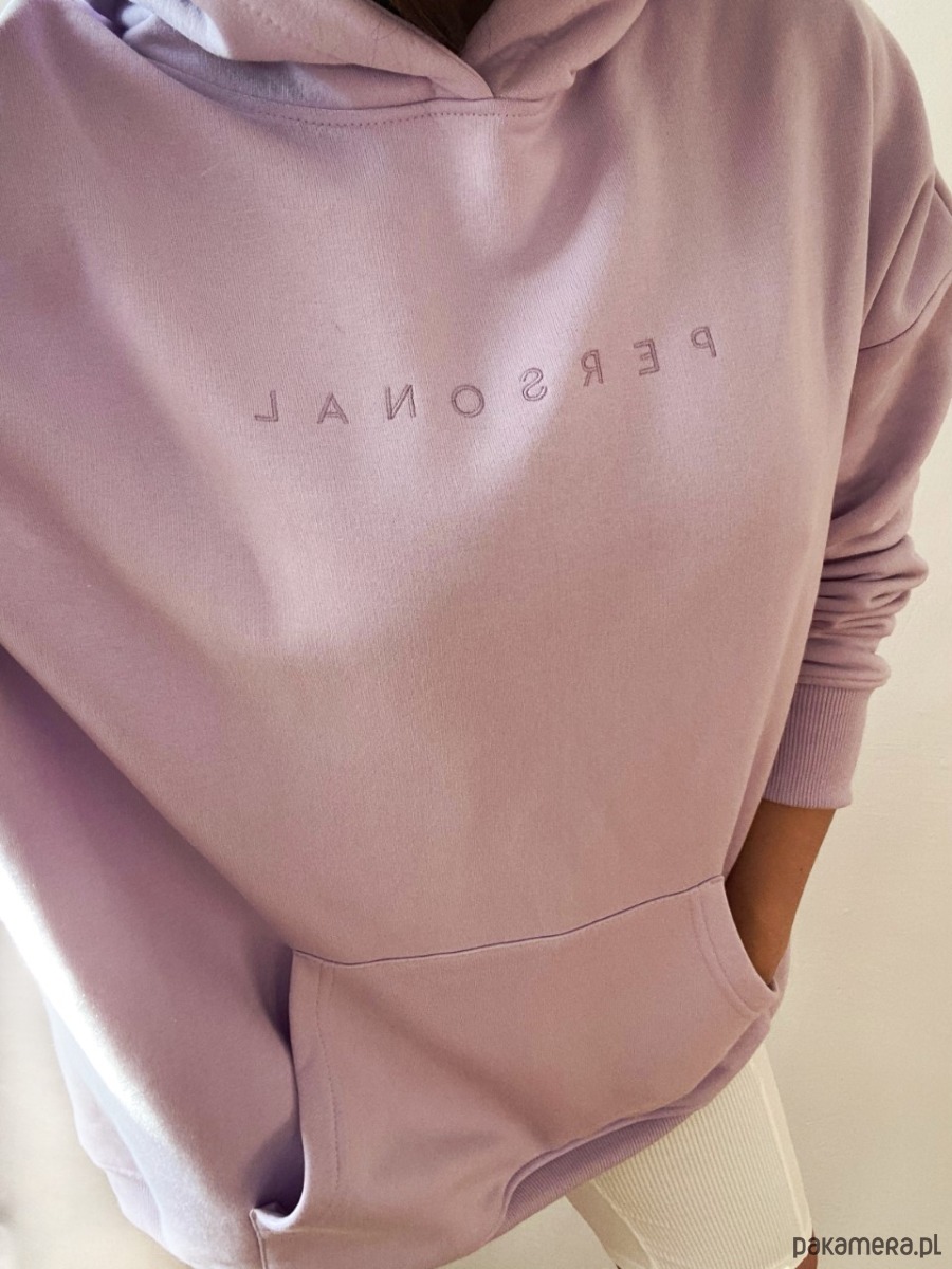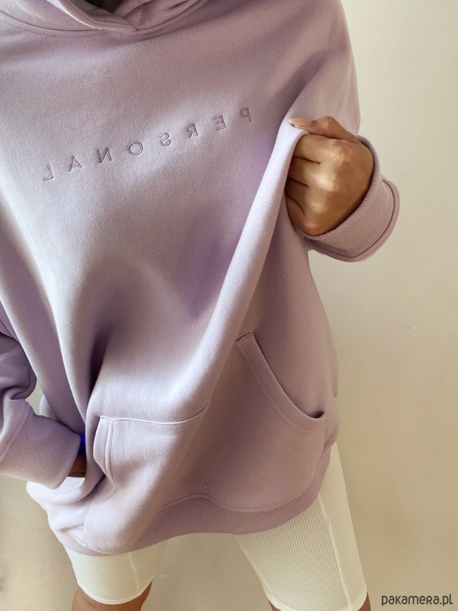 Bluza dresowa z obszernym kapturem w kolorze pięknego lila. Dłuższa o mocno oversizowym kroju. Ściągacze w rękawach i na dole, co pozwala na wygodne podwinięcia i dopasowanie długości. Na przodzie haftowane logo. Miękka i wygodna. Opuszczone linie ramion. Idealna do wielu stylizacji: dżinsów, spódnic, płaszczy, kurtek dżinsowych czy skórzanych. W środku wykończona miękką puszkiem. Bluza z naszywaną na przodzie kieszenią kangurką.