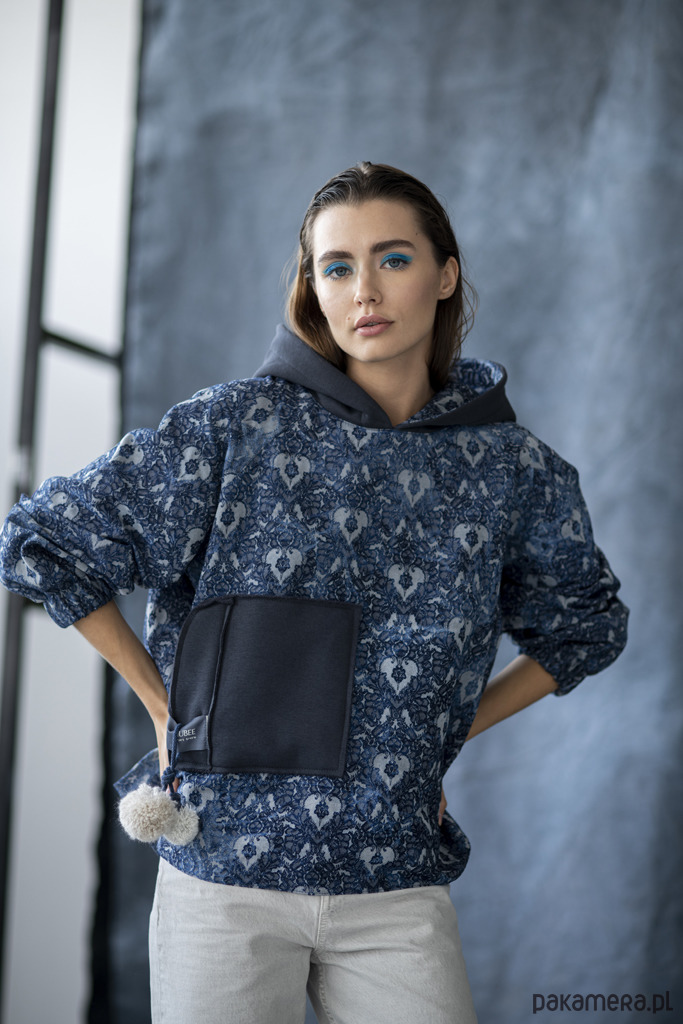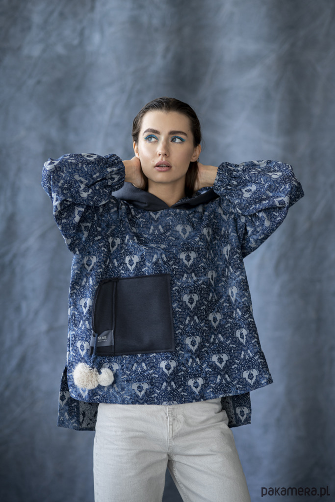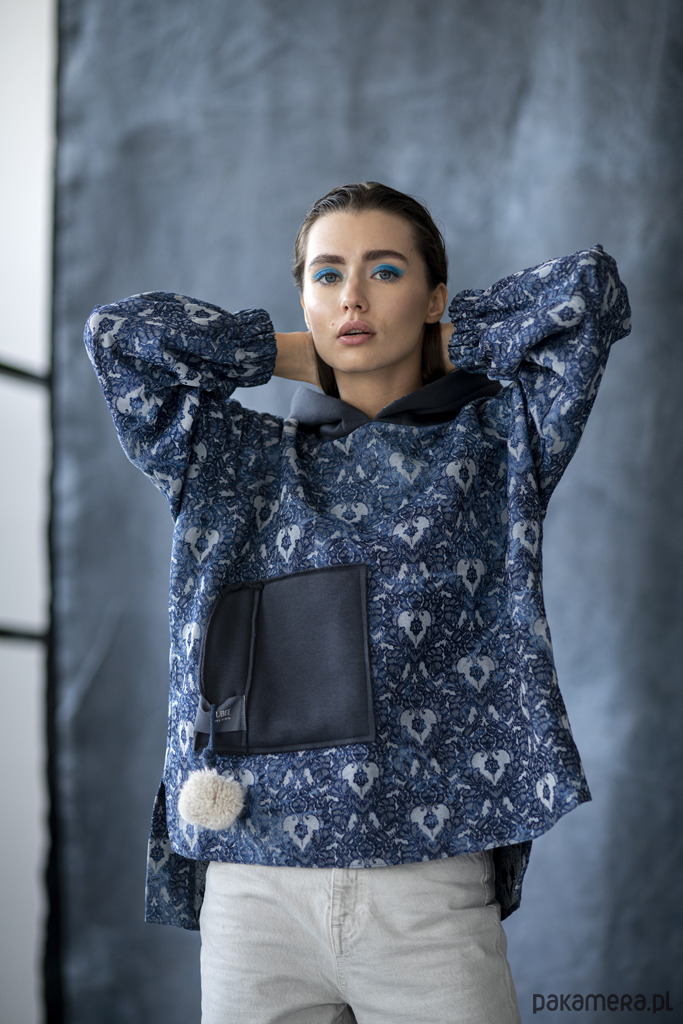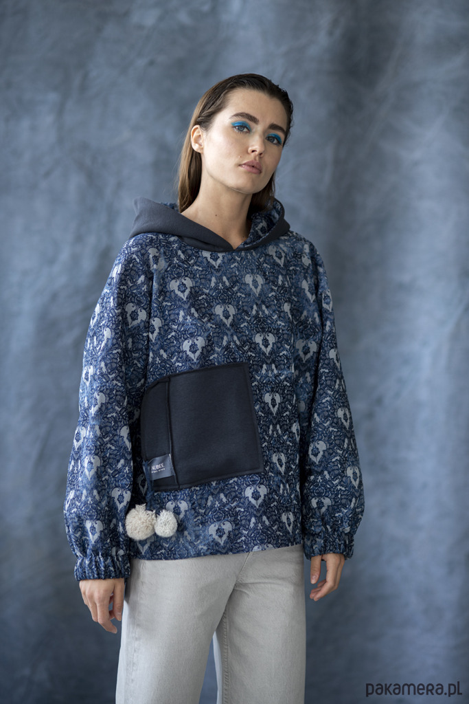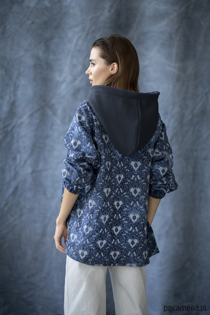 BLUZA FIKA DENIM- z przedłużonym tyłem oraz oversizowym kapturem.