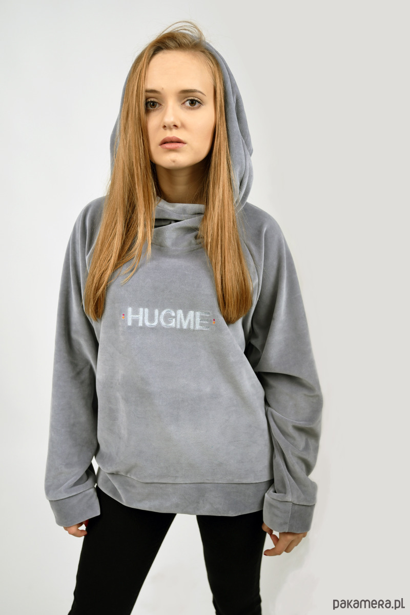Piękna bluza wykonana z przemiłego, oddychającego weluru, materiału najbardziej pożądanego w tym roku. Uszyta i zaprojektowana w Polsce. Designerski napis HugMe na piersi. Idealna na prezent dla niej.