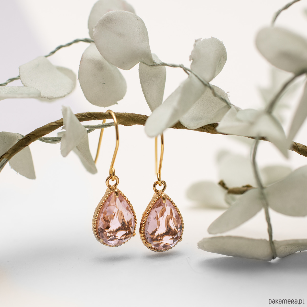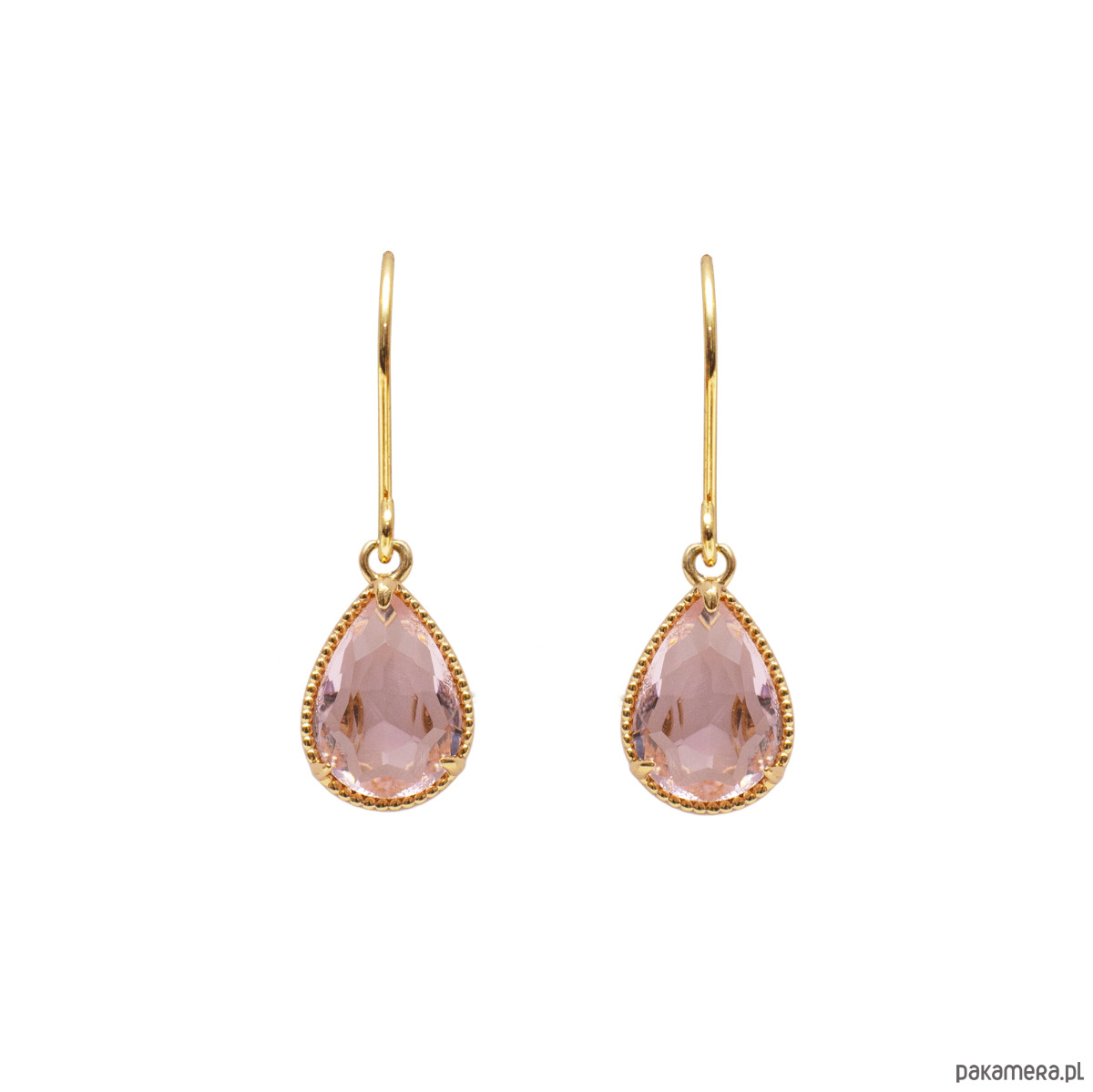 Złocona oprawa podkreśla przejrzystość i barwę kryształów, nadając kolczykom eleganckiego, szlachetnego charakteru. Połączenie ciepłego złota z różowymi tonami tworzy harmonijny, kobiecy duet odpowiedni zarówno na co dzień, jak i na specjalne okazje.