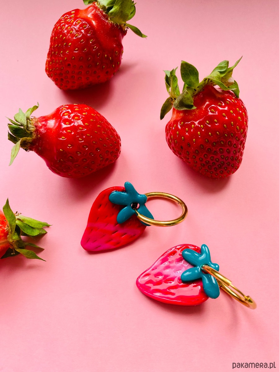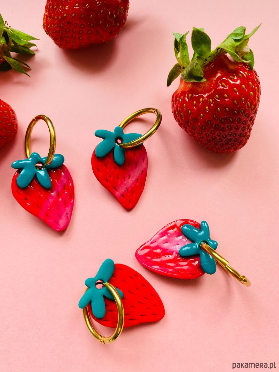Ręcznie robione, ultra lekkie kolczyki truskawy wykonane z gliny polimerowej.