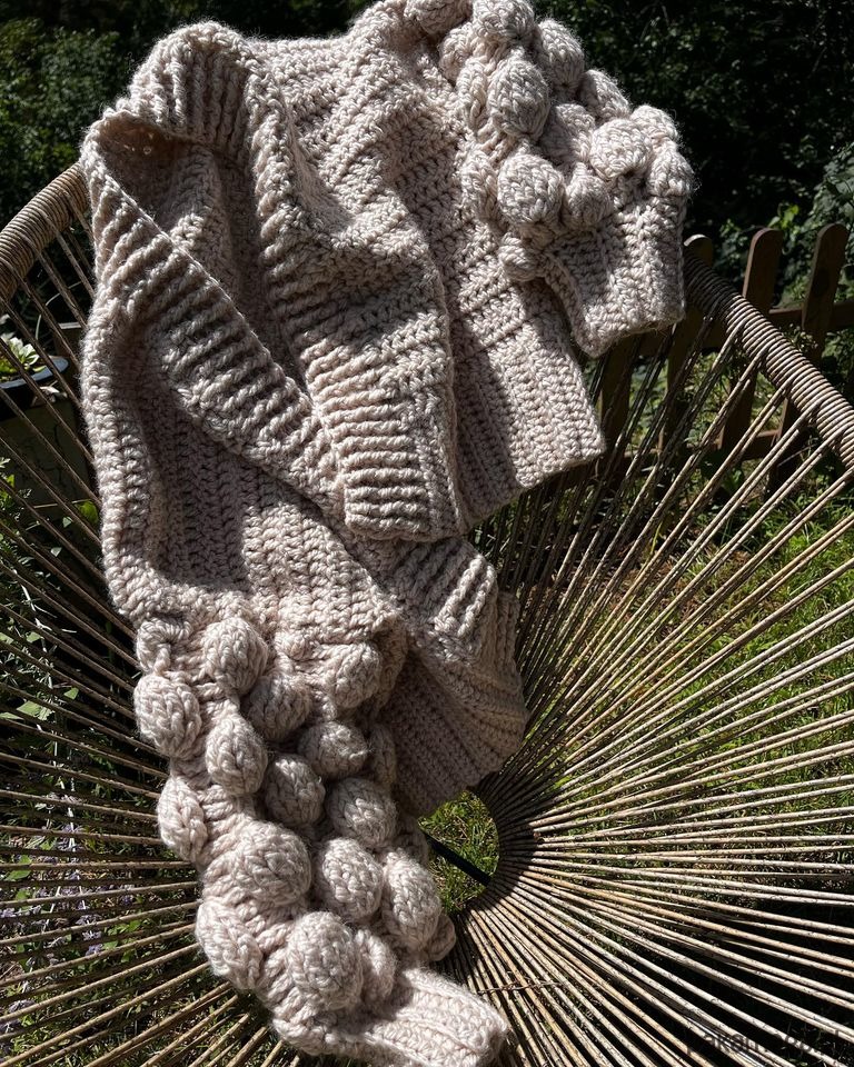 Splot powstał z grubej włóczki z dodatkiem wełny/akrylu