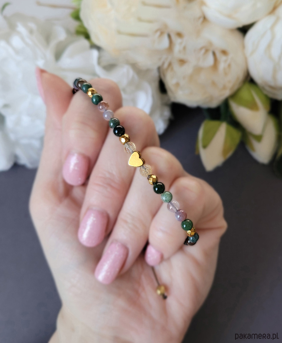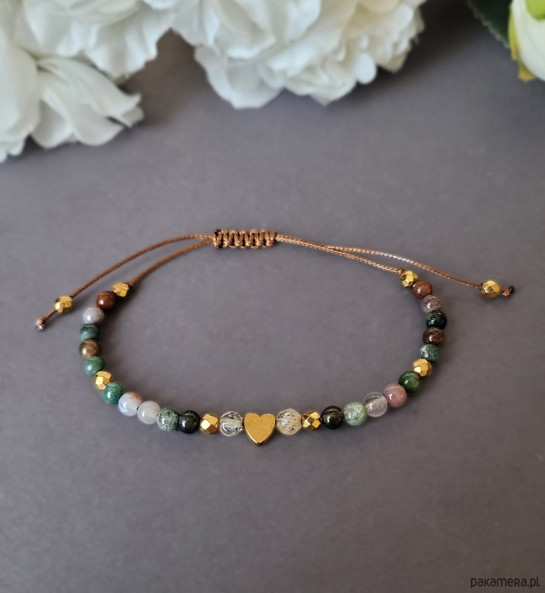 Piękna delikatna bransoletka zrobiona z kamieni naturalnych:Cytrynem, Agatem indyjskim oraz Hematytu w kolorze złota.