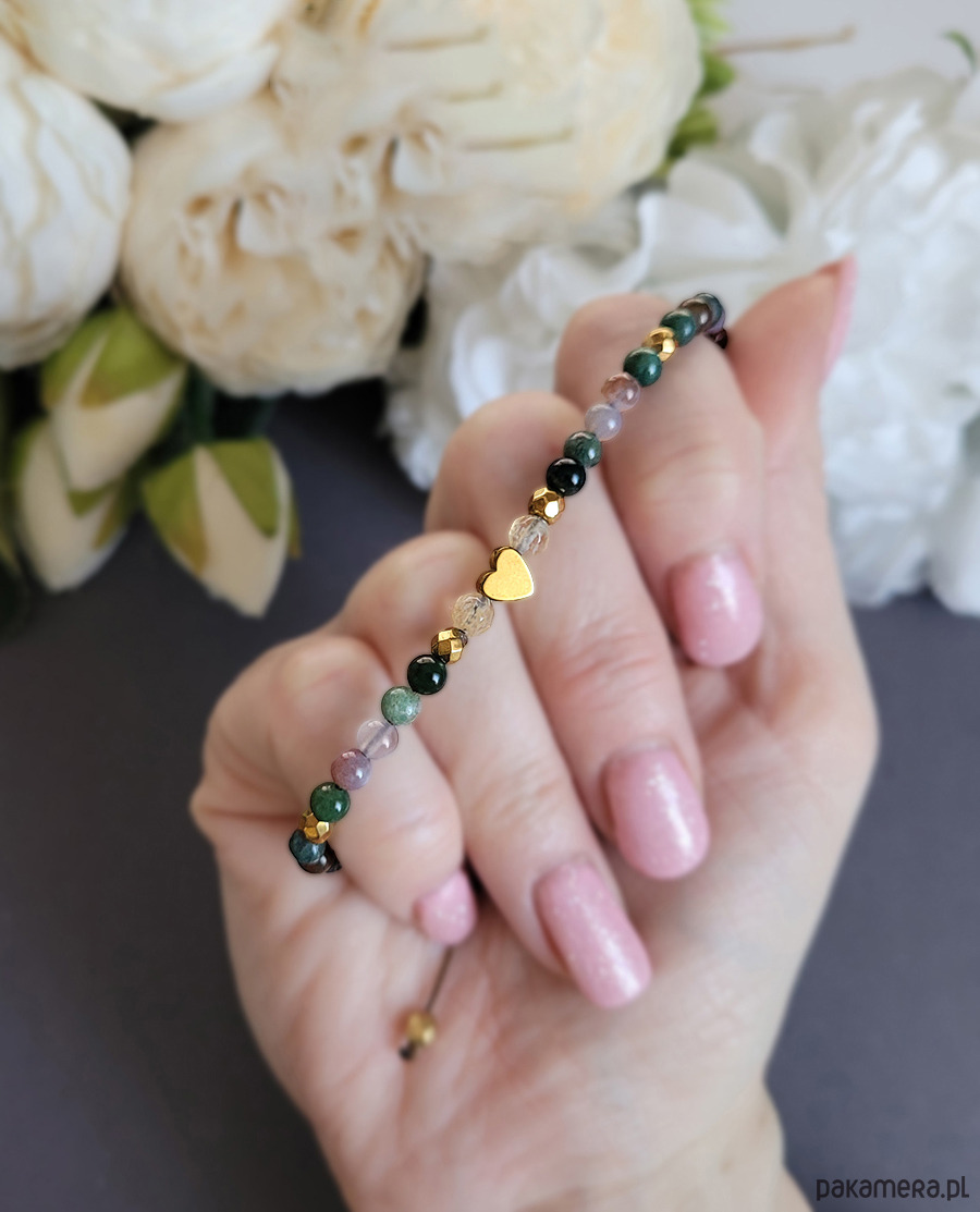 Piękna delikatna bransoletka zrobiona z kamieni naturalnych:Cytrynem, Agatem indyjskim oraz Hematytu w kolorze złota.