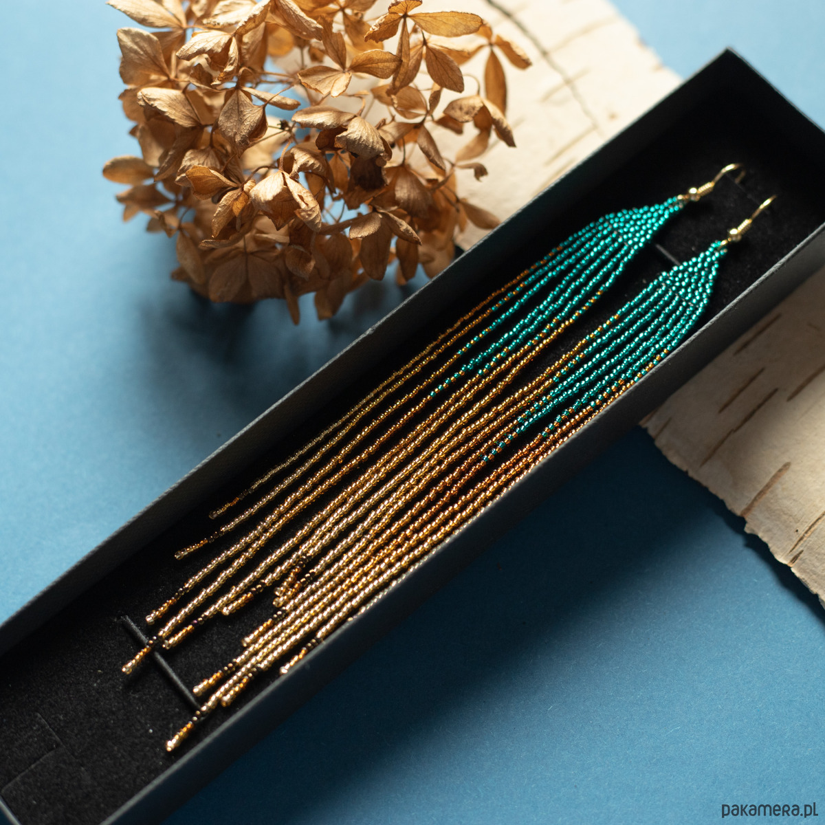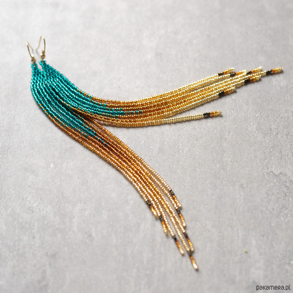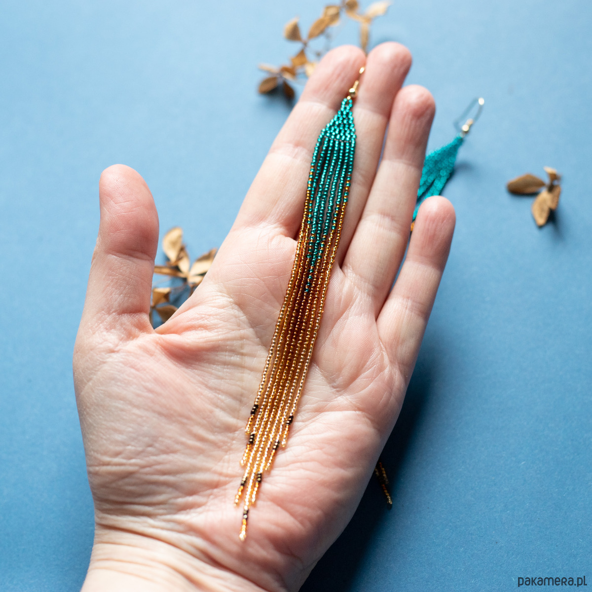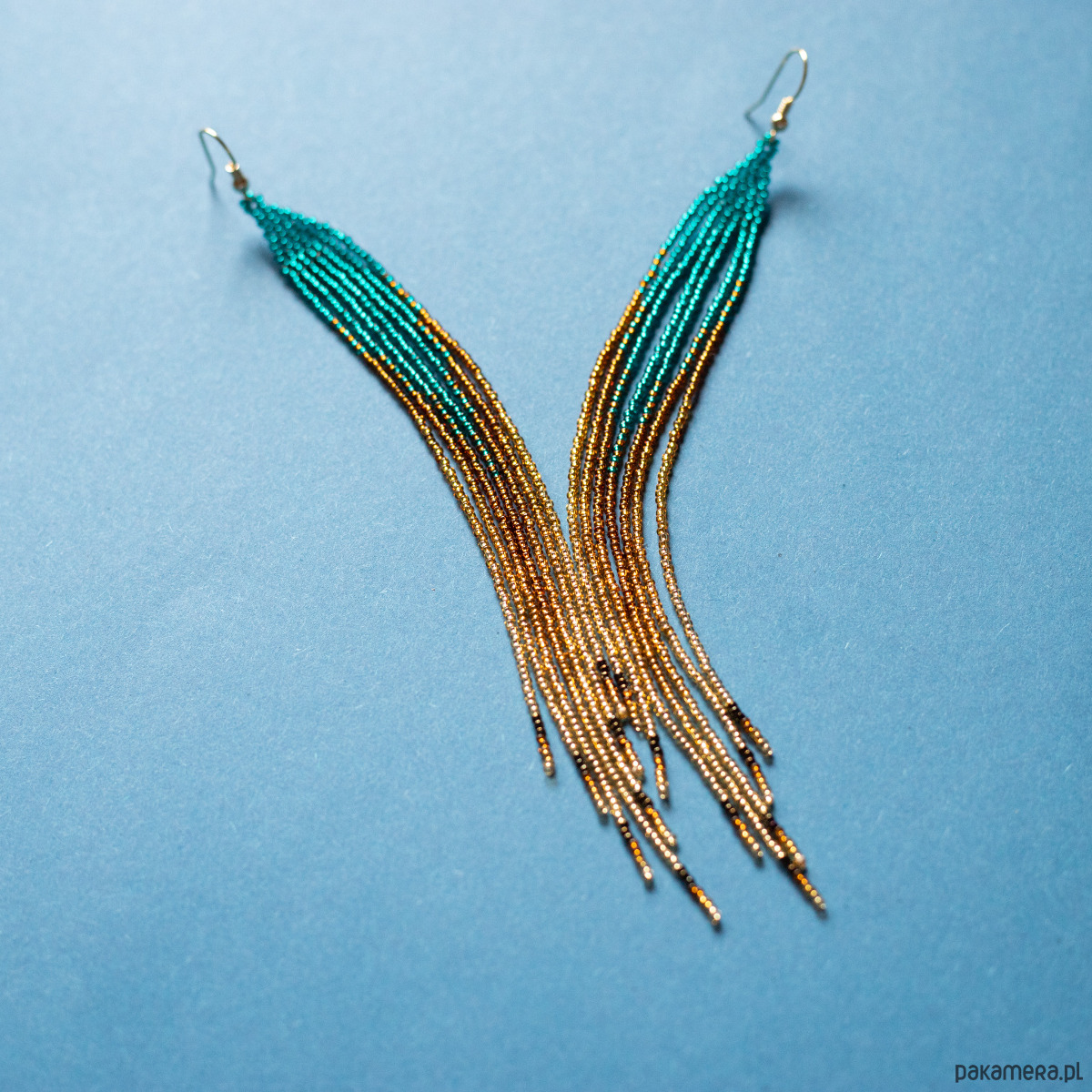 Boho Beauty - długie kolczyki w kolorze morskim i złotym