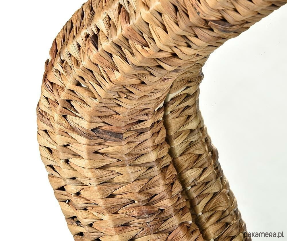 Ręcznie wykonane z dbałością o każdy detal, lustro zachwyca oryginalnym kształtem inspirowanym naturą. Asymetryczna oprawa z trawy morskiej, w ciepłym odcieniu brązu, emanuje ciepłem i tworzy niepowtarzalną atmosferę.