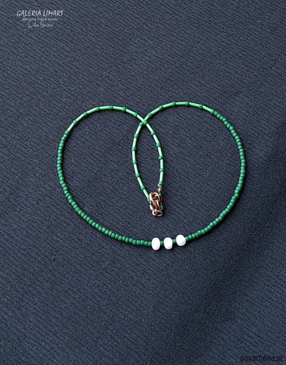 Boho minimalistycznie Naszyjnik z perłami wsród zieleni Prezent handmade