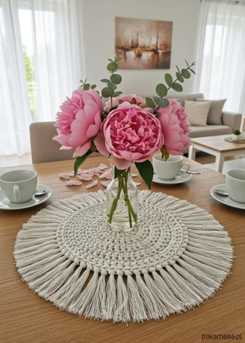 Stwórz niepowtarzalny klimat przy stole. Boho podkładka na stół z frędzlami ze sznurka to efektowna podkładka, która doda Twojej przestrzeni nie tylko ciepła, ale także wyjątkowego uroku.