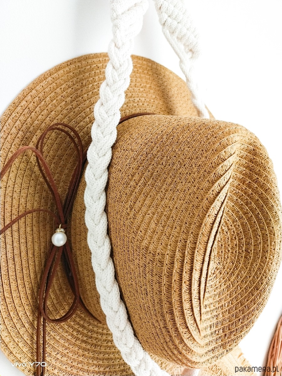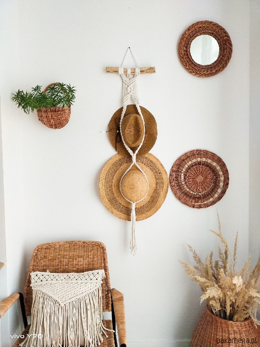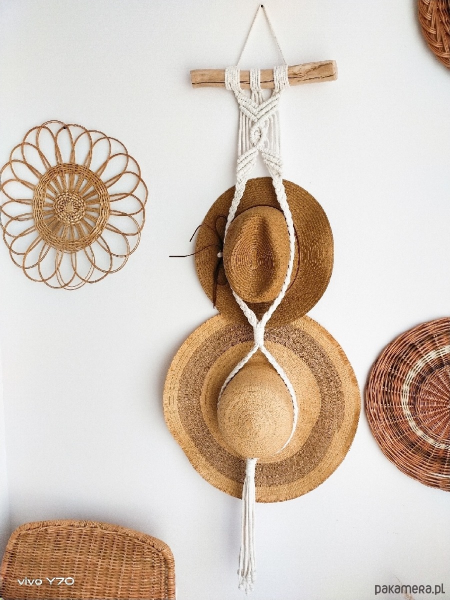 Boho wieszak makrama ze sznurka na 2 kapelusze.