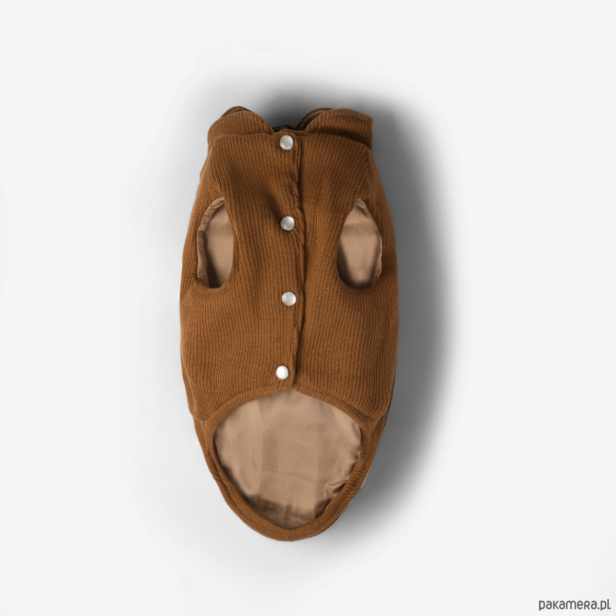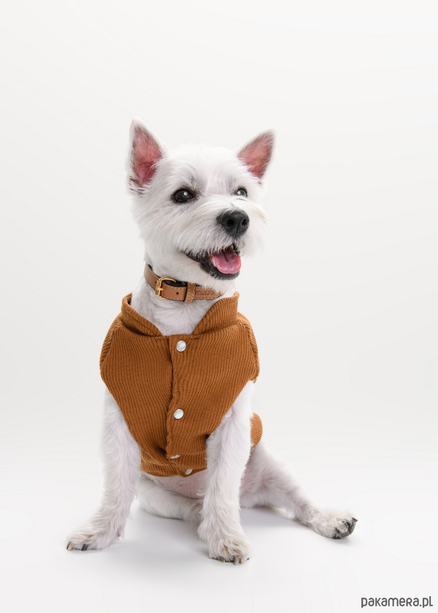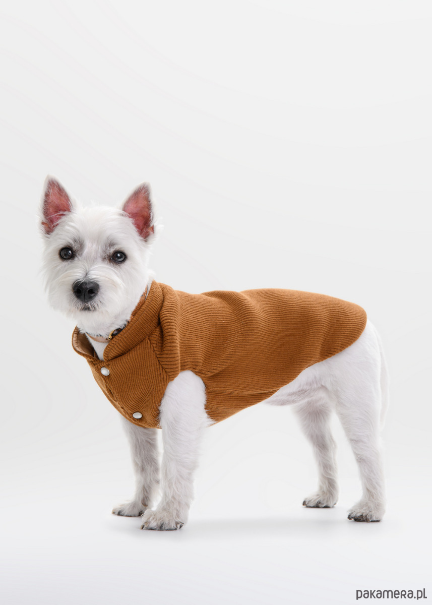Bomberka Brio w odcieniu ciepłego karmelu to doskonały wybór na chłodniejsze poranki oraz wieczorne spacery– wszędzie tam, gdzie Twój pupil potrzebuje lekkiej ochrony bez przegrzewania. Naturalny kolor i klasyczny krój sprawiają, że ubranko pasuje do każdej okazji.