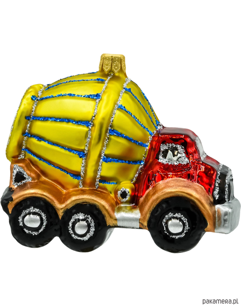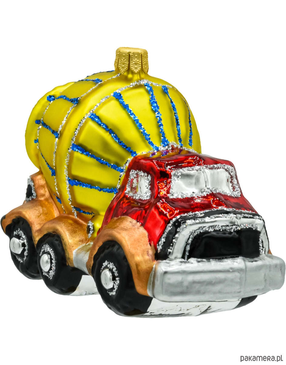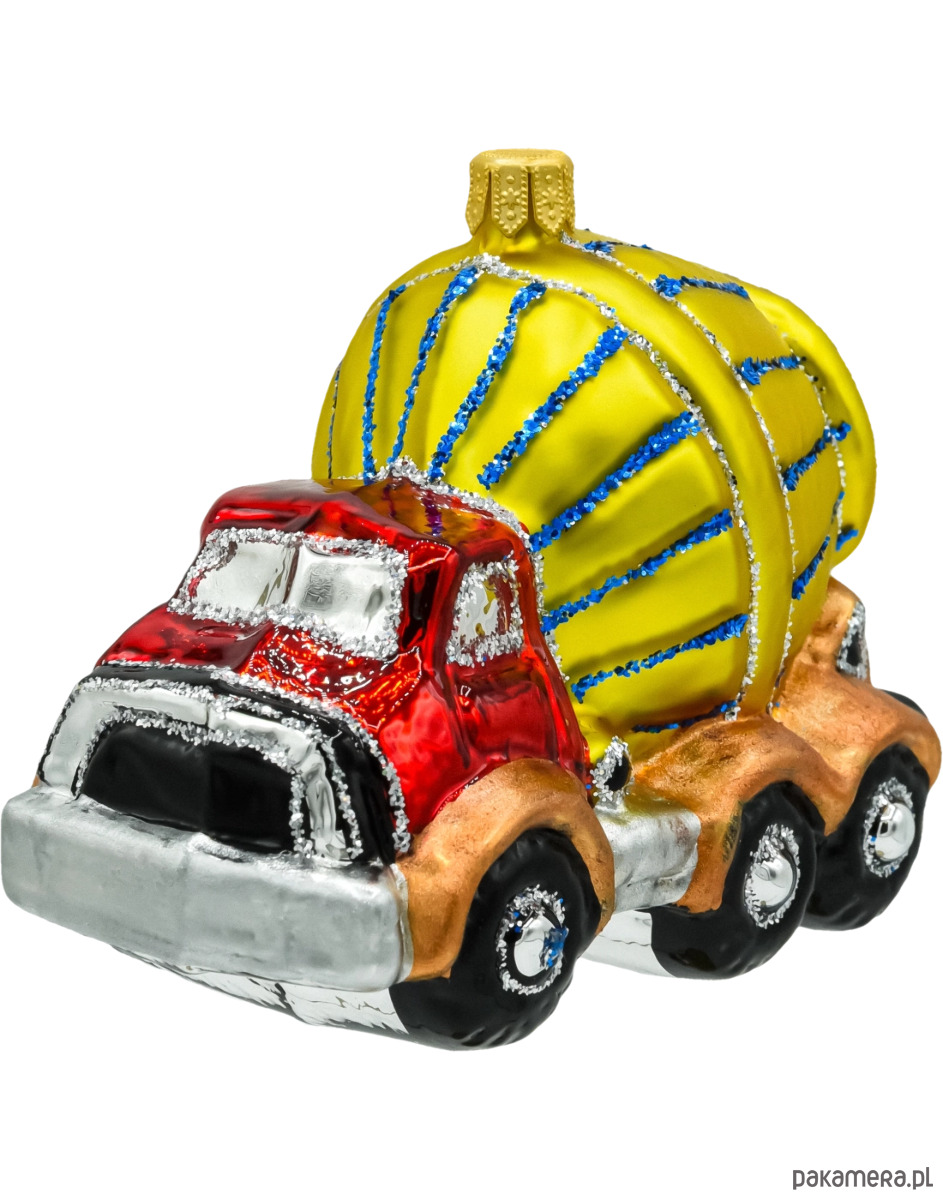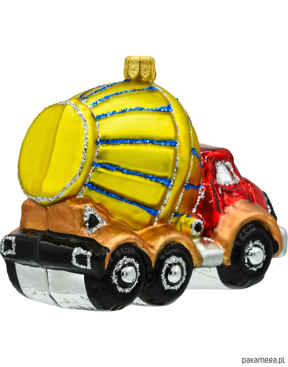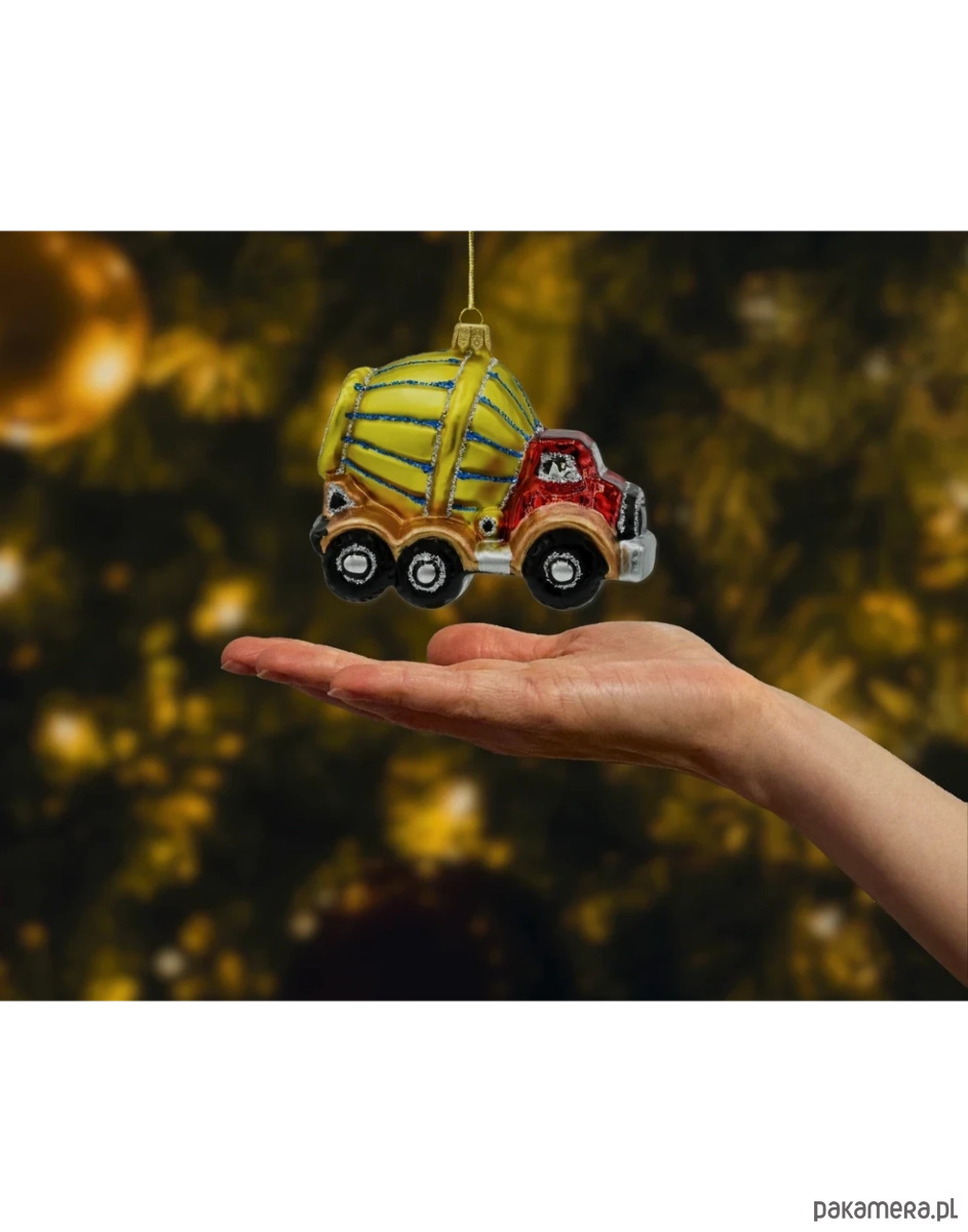 Wykończenie: Ręcznie malowane detale – każdy element, od bębna betoniarki po reflektory, został starannie pomalowany, co nadaje bombce realistyczny wygląd i wyjątkowy charakter.