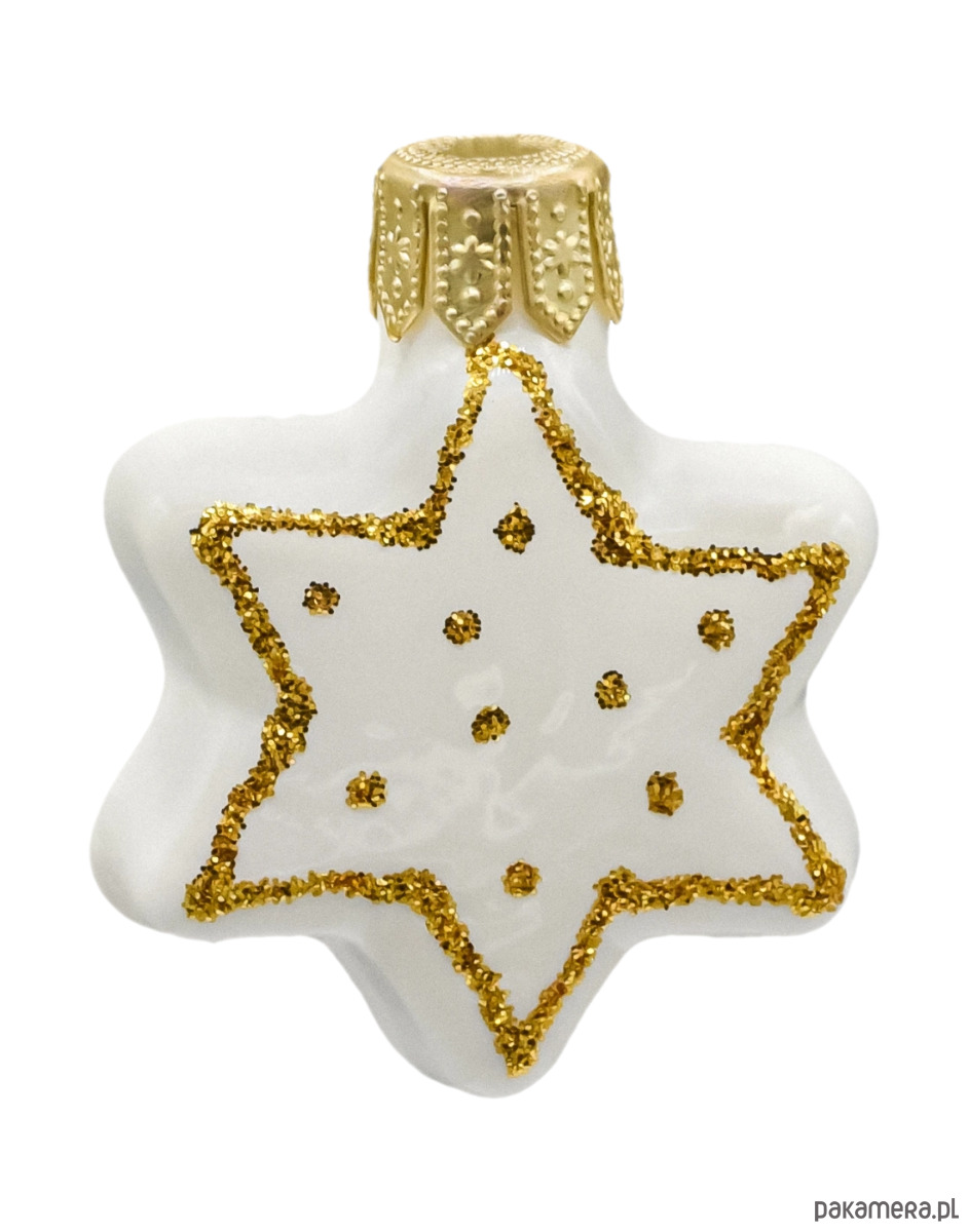 Bombka choinkowa: Biała gwiazdka ze złotym brokatem