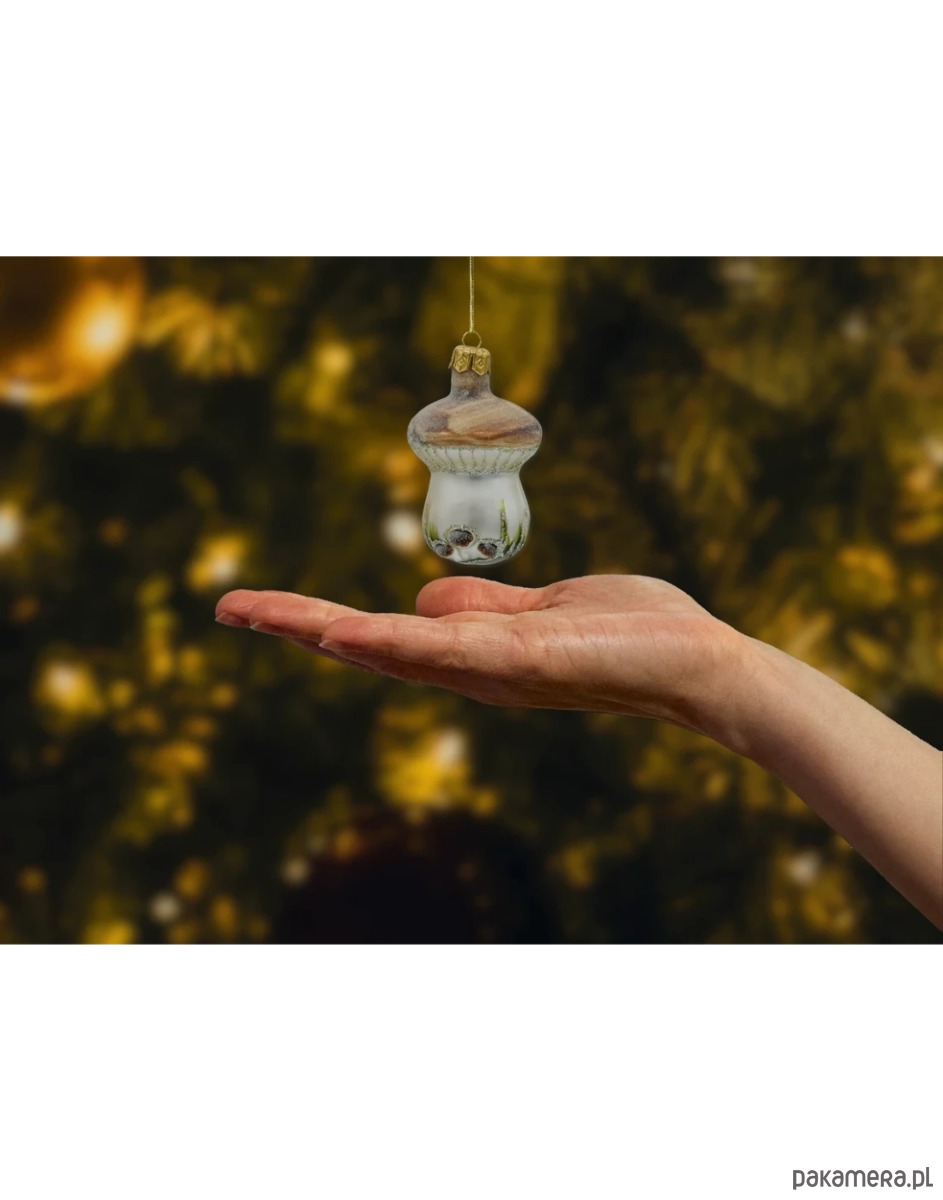Idealna do dekoracji świątecznych w stylu rustykalnym, vintage oraz eko. Ta bombka świetnie komponuje się z innymi ozdobami inspirowanymi lasem – jak szklane sowy, lisy, szyszki czy inne grzybki. Jej subtelna elegancja doda ciepła każdej choince – niezależnie od aranżacji.