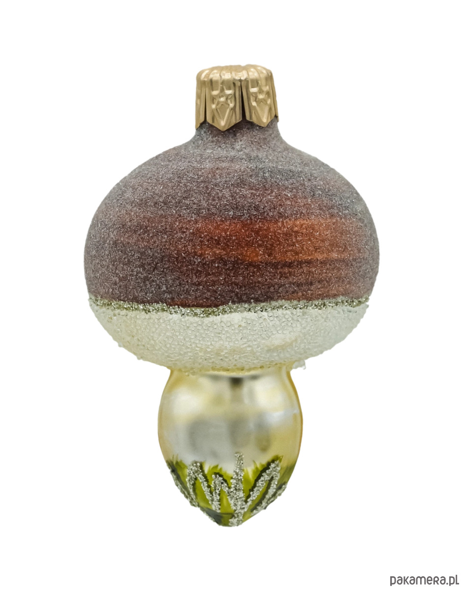 Bombka choinkowa: Brązowy grzybek z brokatem