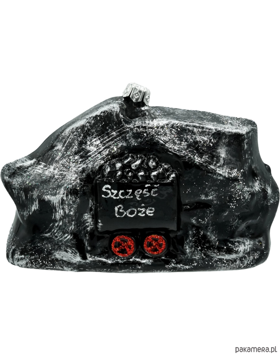 Bombka choinkowa: Bryła węgla z wózkiem - Szczęść Boże