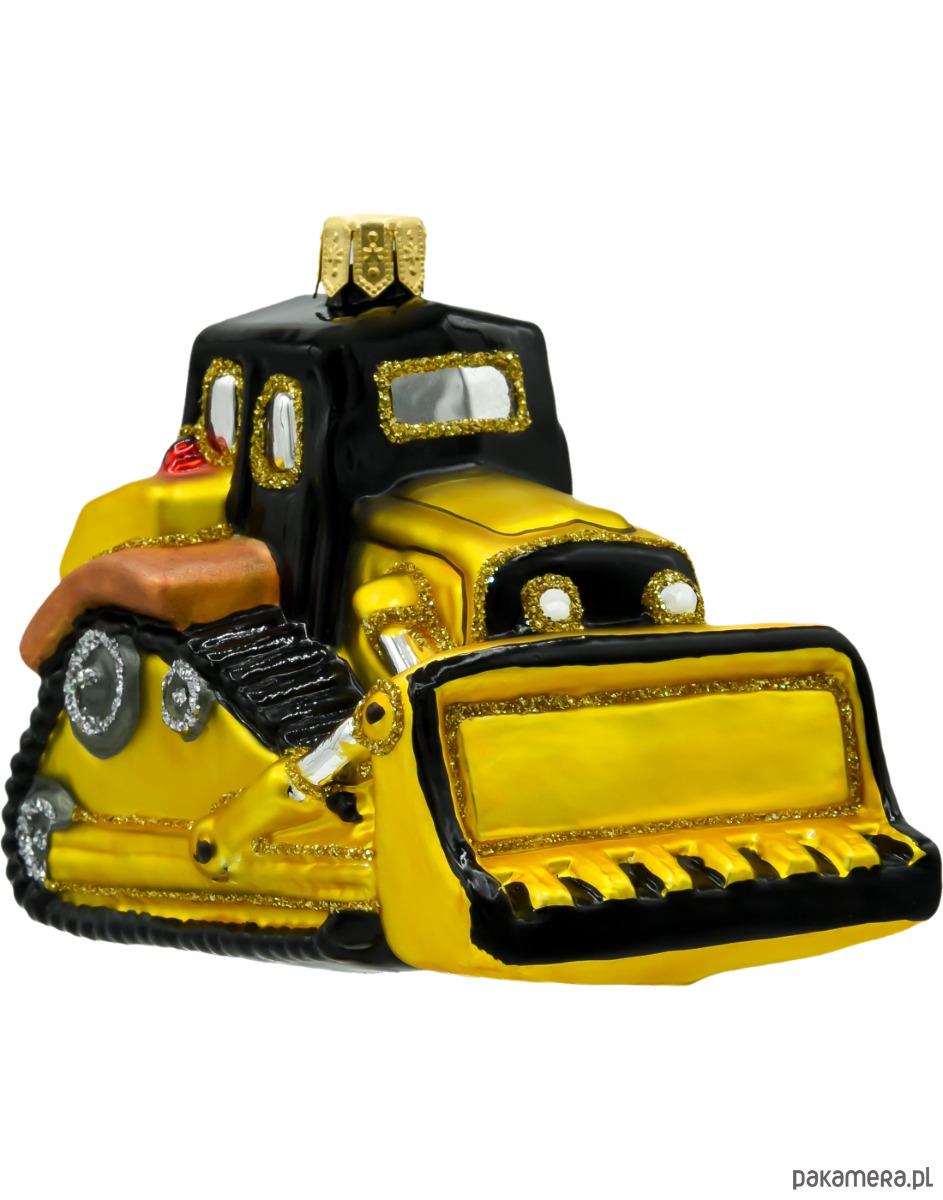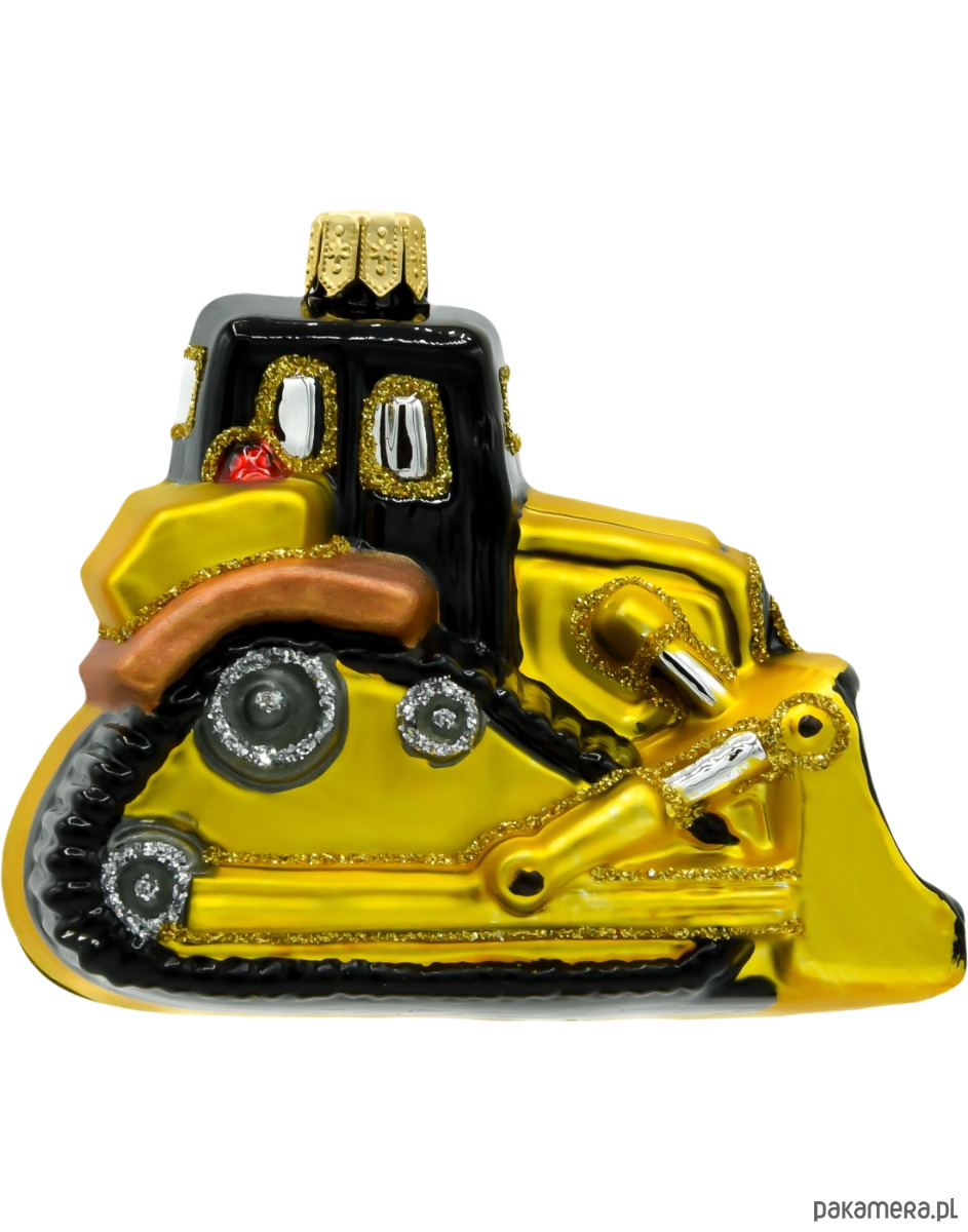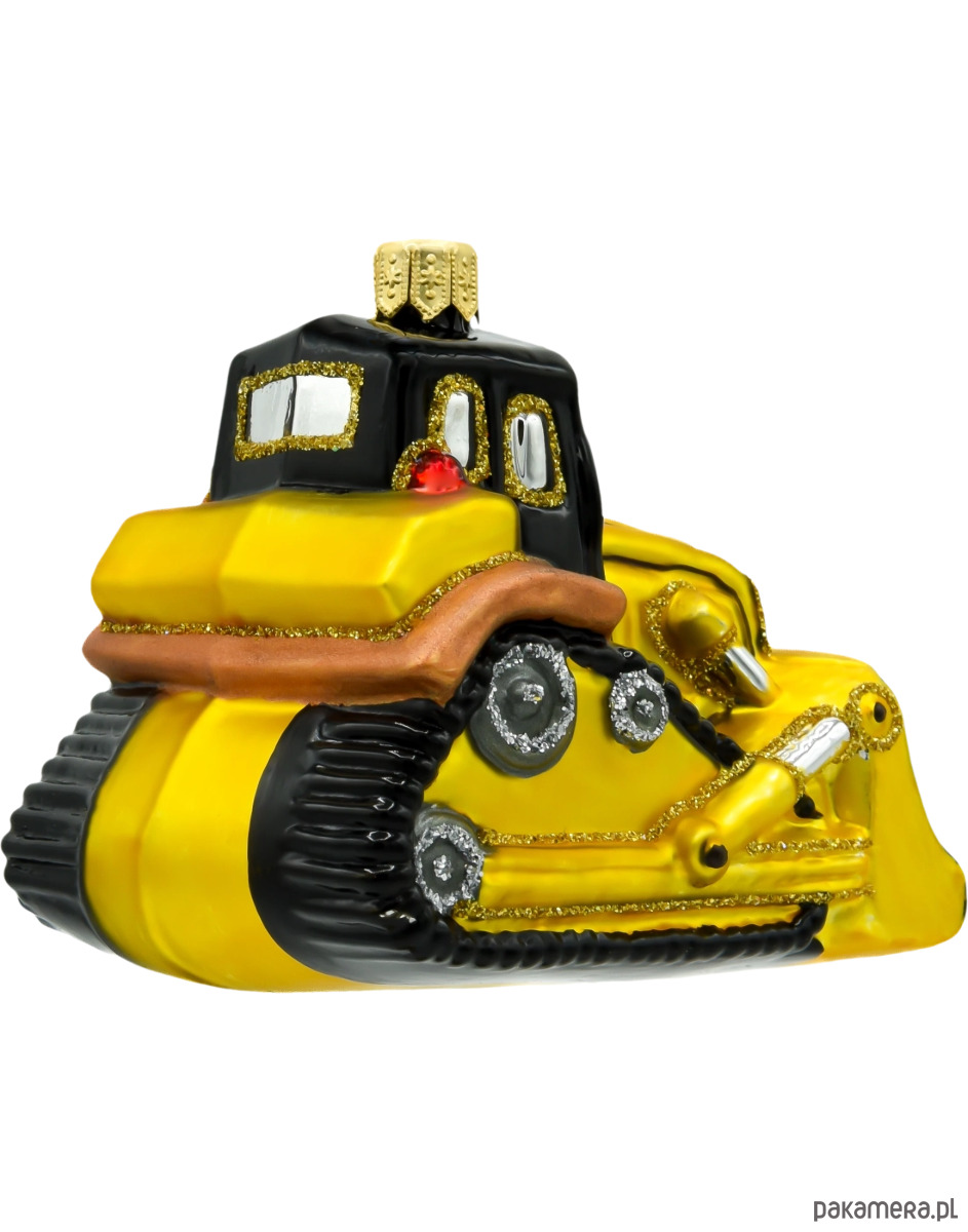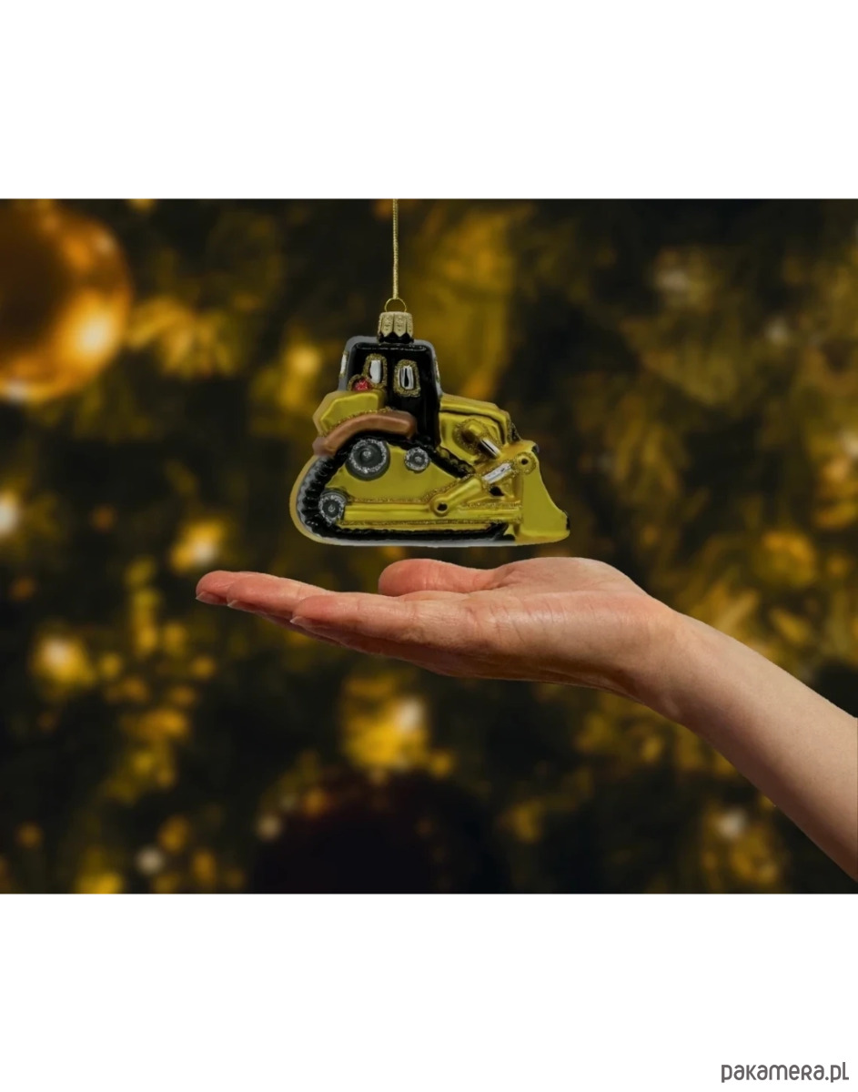 Bombka w kształcie realistycznego buldożera została starannie odwzorowana, zachowując charakterystyczne detale, takie jak gąsienice, łyżka spycharki i kabina operatora. Kolory żółci i czerni idealnie oddają industrialny styl maszyny.