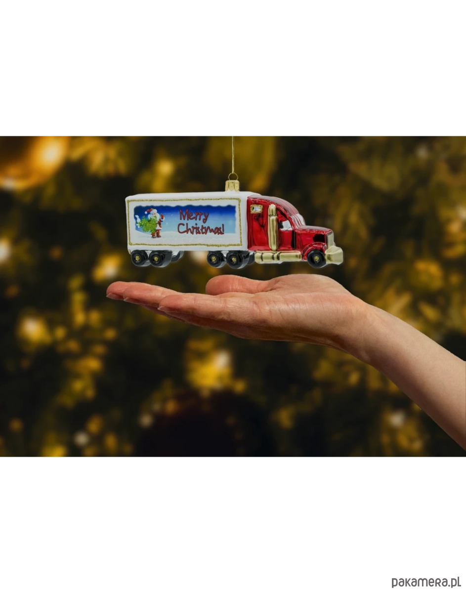 • Na prezent: świetny upominek dla pracowników firm transportowych, miłośników TIR-ów i dzieci, które kochają pojazdy – oryginalna, kolekcjonerska bombka szklana.