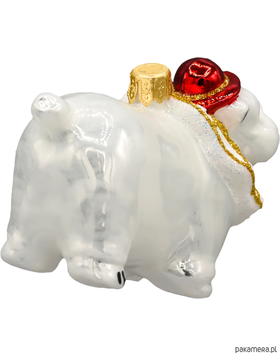 Jeśli lubisz święta z humorem i charakterem, ta bombka będzie strzałem w dziesiątkę! Szklana bombka choinkowa w kształcie białego buldoga ubranego w cyrkowy strój to nietuzinkowa ozdoba, która wnosi na choinkę odrobinę zabawy i ekstrawagancji. Ręcznie malowana, z brokatowym wykończeniem i efektownym czerwonym kapeluszem – ta bombka wyróżnia się zarówno pomysłem, jak i precyzją wykonania.
