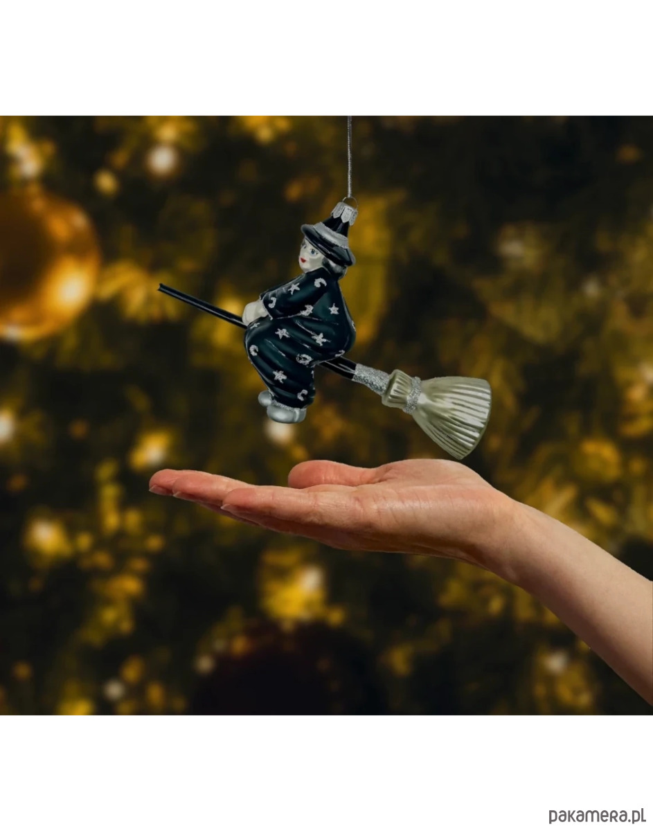 Bombka choinkowa: Czarna Czarownica na Miotle